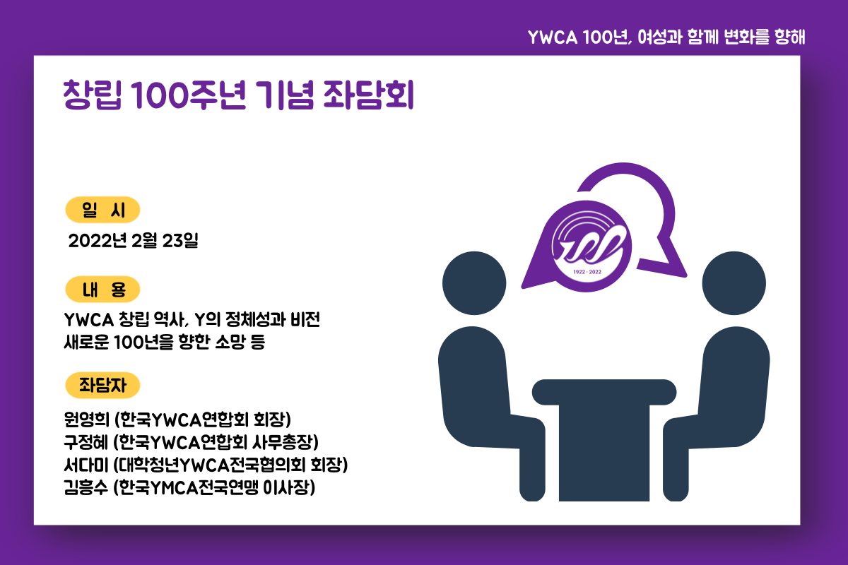 지난 2월, 한국YWCA 창립 100주년을 맞이하여 기념 좌담회를 진행하였습니다.