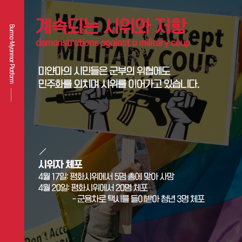 미얀마의 이야기가 더 잘 들릴 수 있도록 미얀마 소식을 담은 카드뉴스를 제작하였습니다.