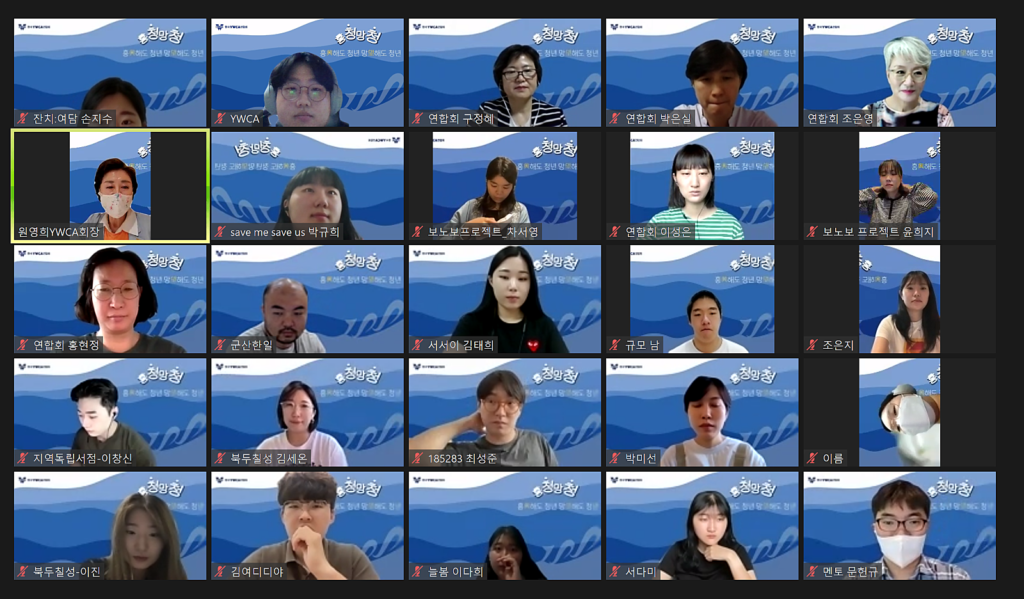 지난 6월 11일(토) 오전 10시부터 12시까지 흥청망청-YWCA세상을 살리는 100개의 프로젝트 쇼케이스가 온라인 줌으로 개최되었다. 원영희 회장, 조은영 흥청망청 심사위원장을 비롯하여 후원과 지원을 하는 YWCA 관계자와 멘토, 2022년도 흥청망청 프로젝트에 참여하는 13개 팀의 팀장과 팀원 40여명이 참여하여 프로젝트 목표와 계획, 결과물 등을 열정적으로 소개하였다.