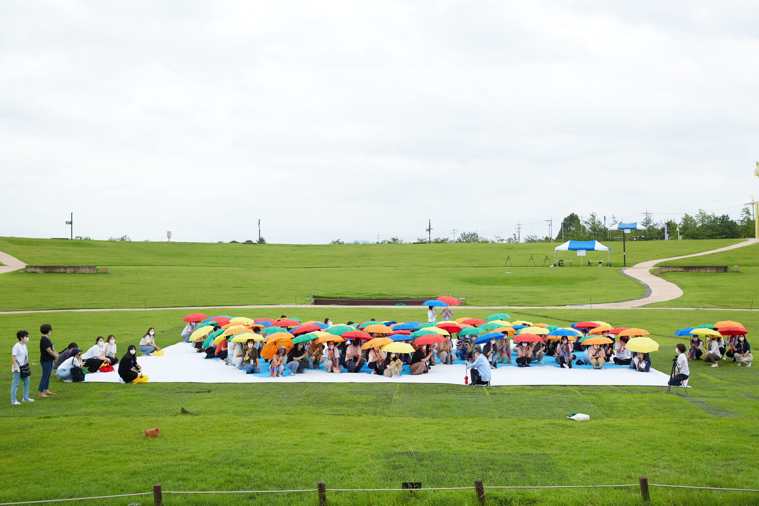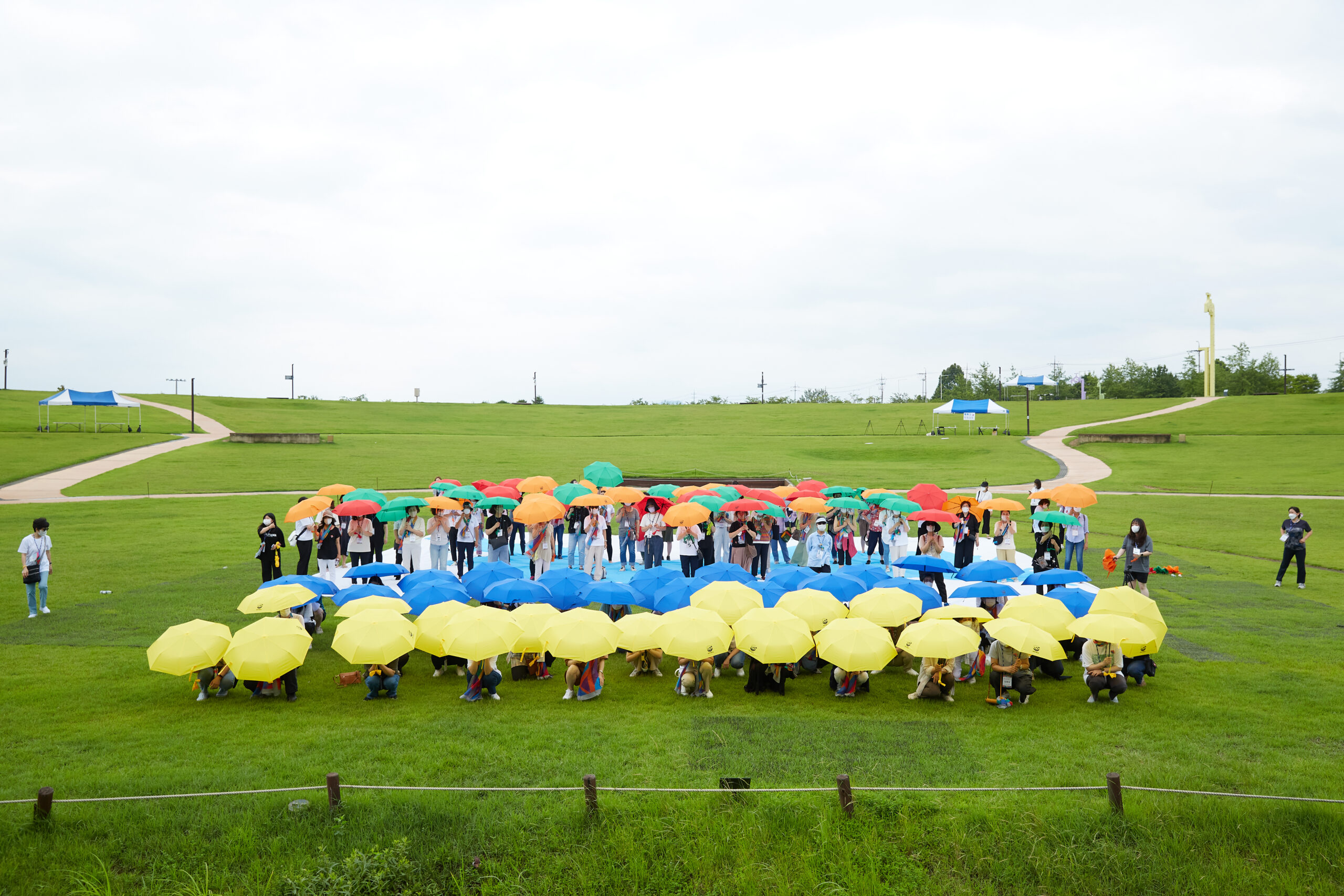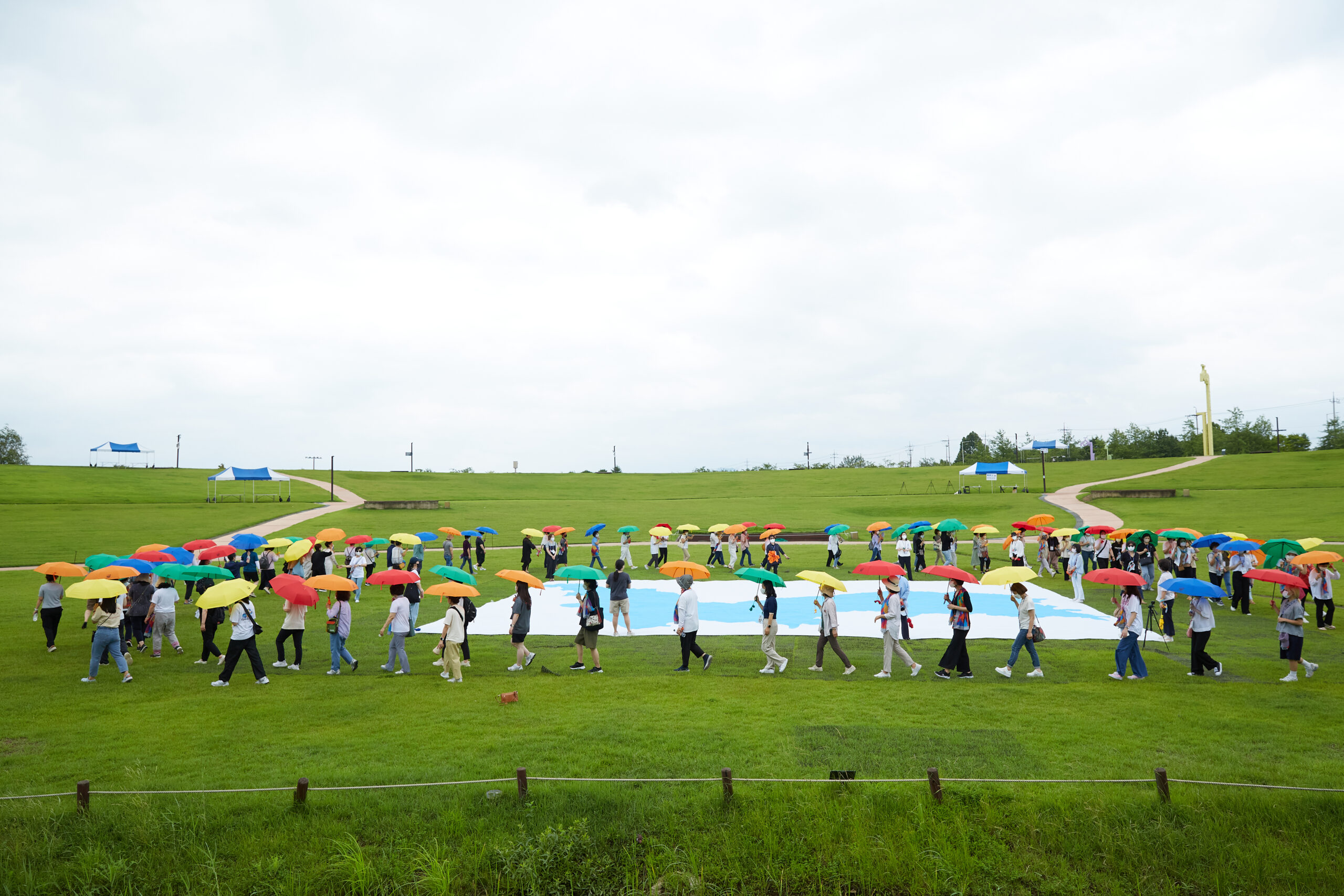 마지막 순서에는 대형 한반도 깃발을 펼치고 ‘100인의 평화순례단’이 우산 퍼포먼스를 펼쳤다. 화해와 평화를 의미하는 조각보의 다양한 색상을 우산으로 펼쳐들어 한반도를 표현해내었으며, 곧이어 노랑과 파랑의 우크라이나 기를 표현해내어 전쟁의 종식과 회복에 대한 지지와 연대를 나타내었다.
