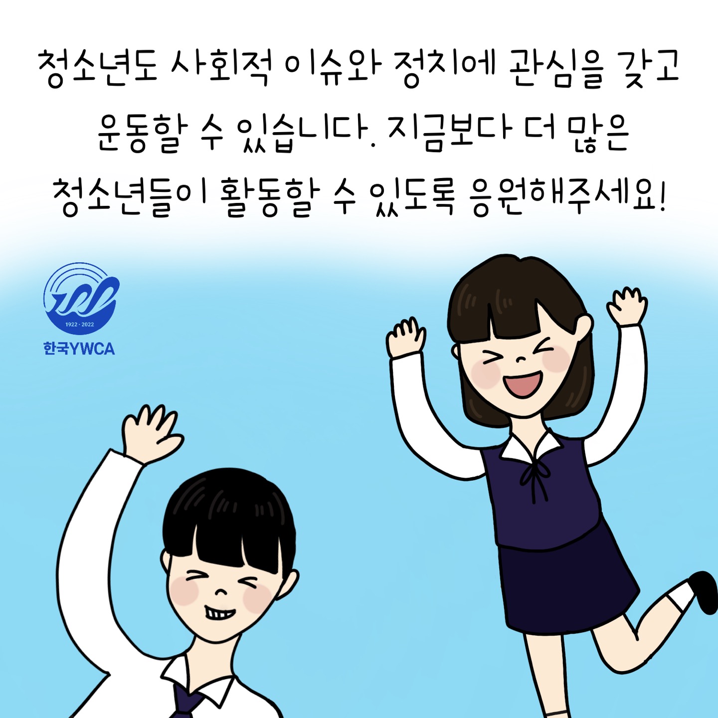 중학생 때부터 YWCA 활동(@yteen1922)에 적극적으로 참여하며 사회적 이슈와 정치에 관심을 가질 수 있었다는 작가님.