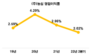 농심은 최근 4월부터 6월까지 3개월간 적자를 기록했다고 주장하지만, 2022년 1월부터 6월까지 2분기 동안 2.02%의 영업이익률을 기록하였다. 21년 영업이익률이 2.96%인 바를 고려하였을 때, 원재료 상승 및 원가 상승의 요인이 있었다고 하더라도 유의적으로 큰 영향을 끼치지 않았음을 확인할 수 있었다. |
