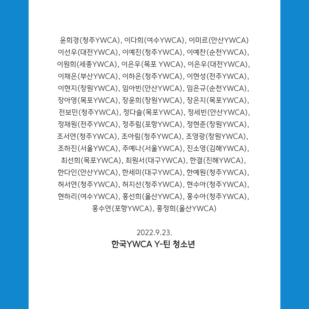 Y-틴 청소년 기후행동 ‘우리의 요구’ 100인 성명 2022.09.23