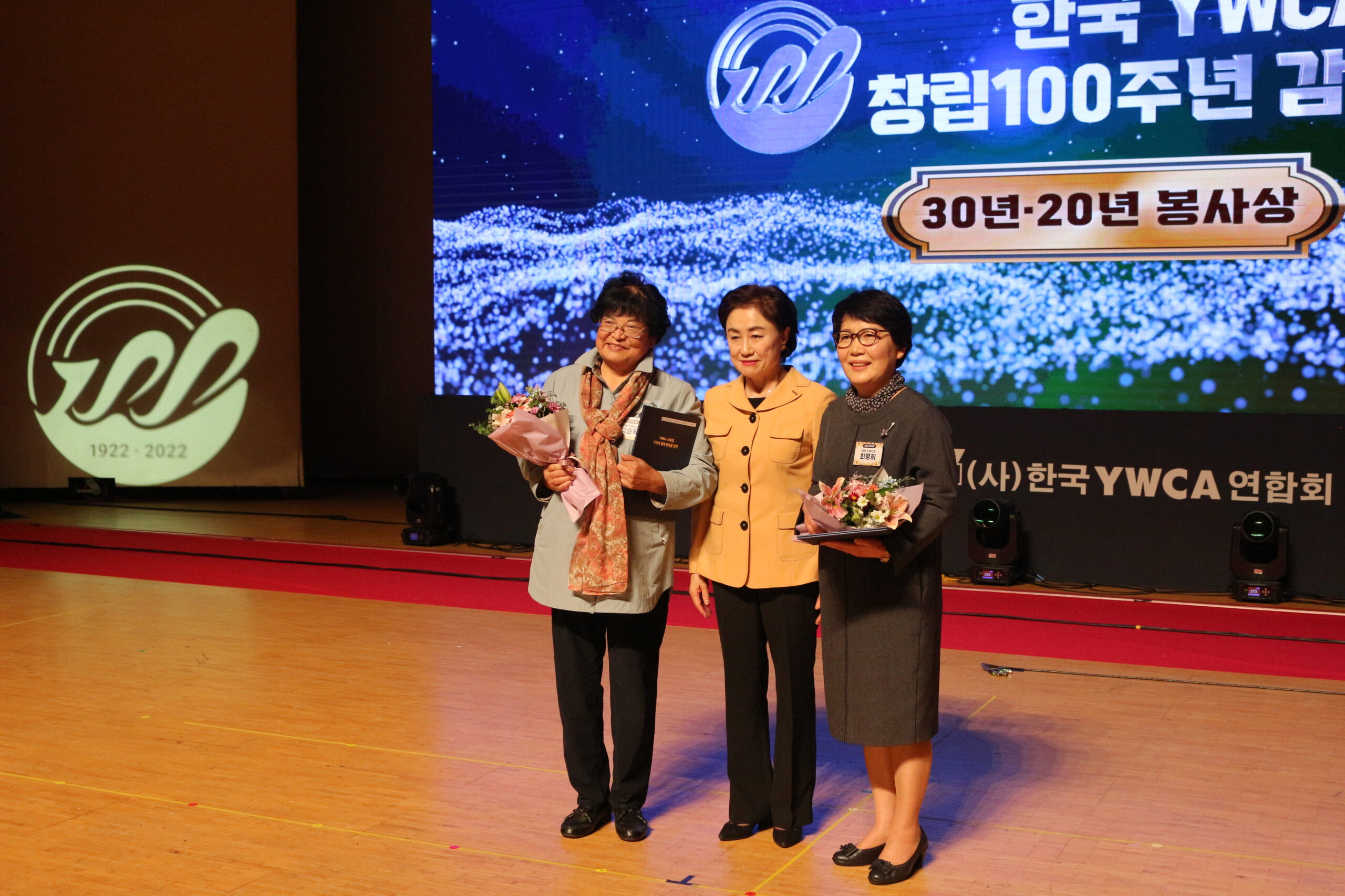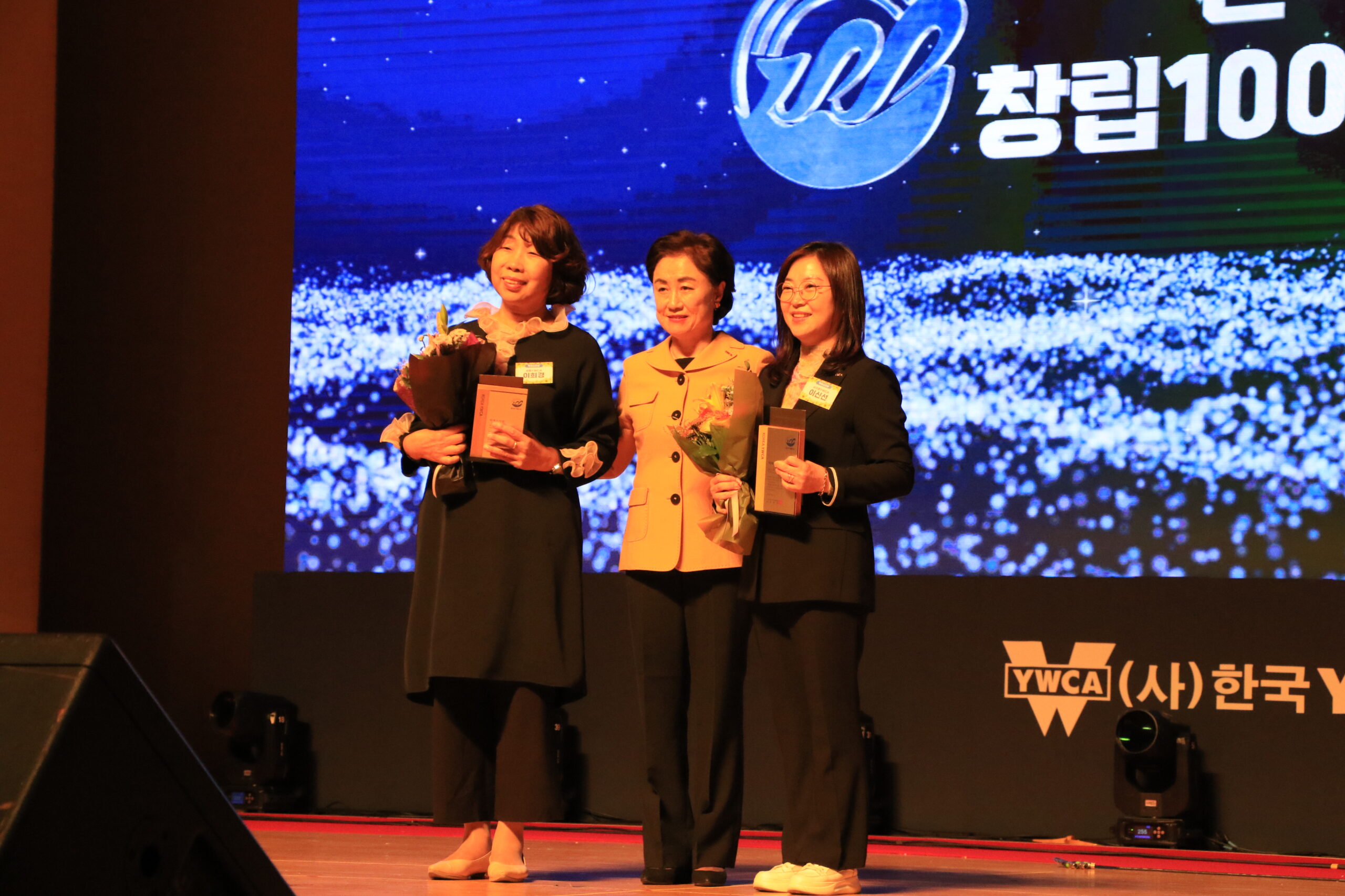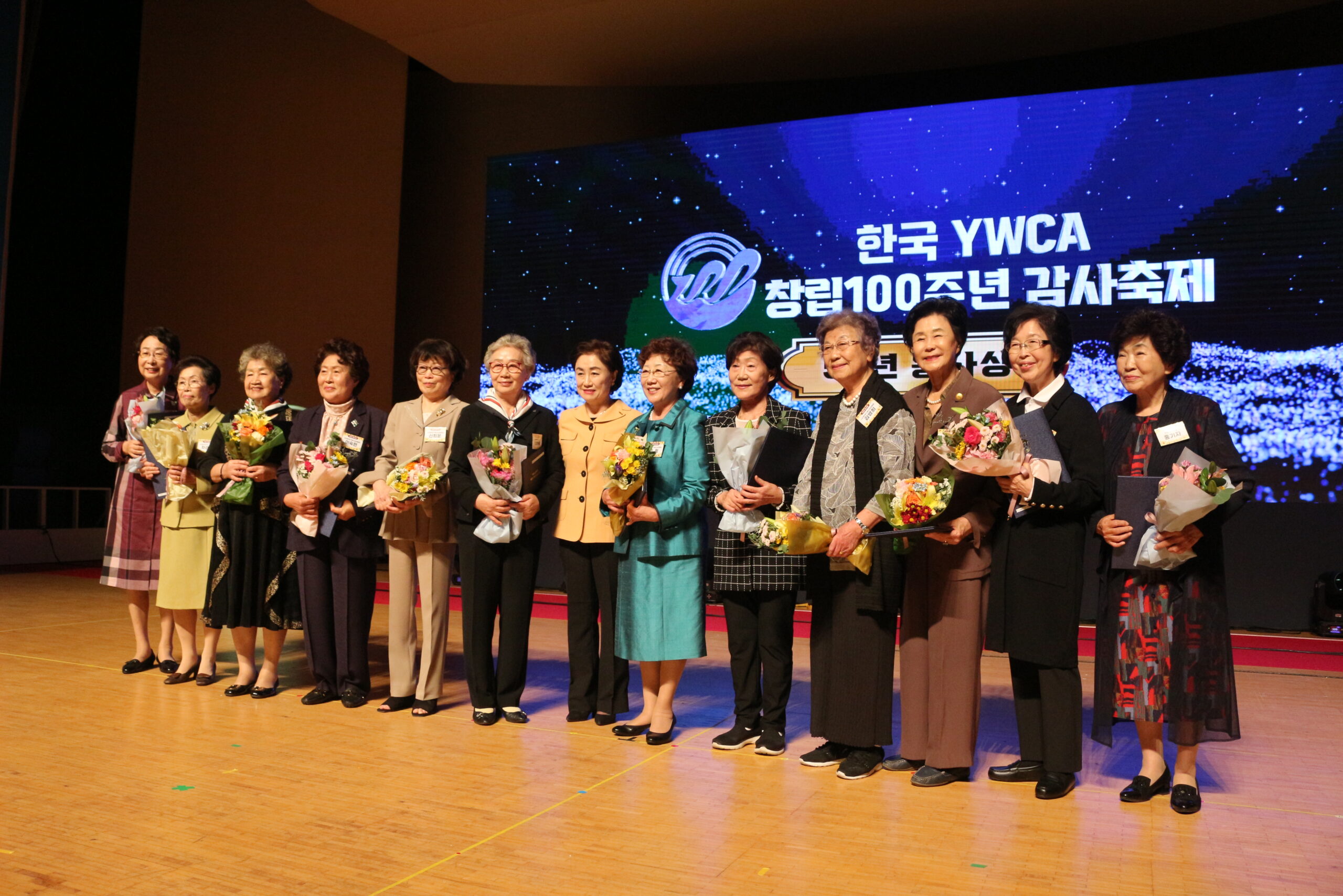 또한 전국 YWCA 회원을 대상으로 50년 봉사상 15명, 40년 봉사상 25명, 30년 봉사상 78명, 20년 봉사상 138명 등의 봉사상이 시상되었다. 한편 실무활동가들에게는 30년 근속상 6명, 20년 근속상 69명, 10년 근속상 188명 등의 근속상이 주어졌다. YWCA의 100년의 여정에 함께한 개인과 단체에 수여하는 감사패는 권오형 삼덕회계법인 대표, 김주영 법무법인 한누리 대표변호사, 표대중 노무법인 대표노무사, 소셜디벨로퍼그룹 더함, 세계YWCA, (주)한국씨티은행에게 수여됐다.