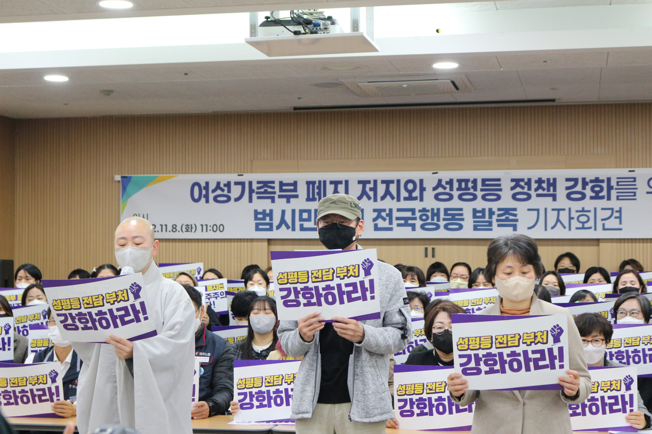 이에 전국 노동, 시민, 여성, 인권, 종교, 환경 단체 등으로 구성된 범시민 사회가 윤석열 정부의 여가부 폐지에 맞서 범시민사회의 목소리와 활동을 결집하는 ‘여성가족부 폐지 저지와 국가 성평등 정책 강화를 위한 범시민사회 전국행동’을 발족했다.