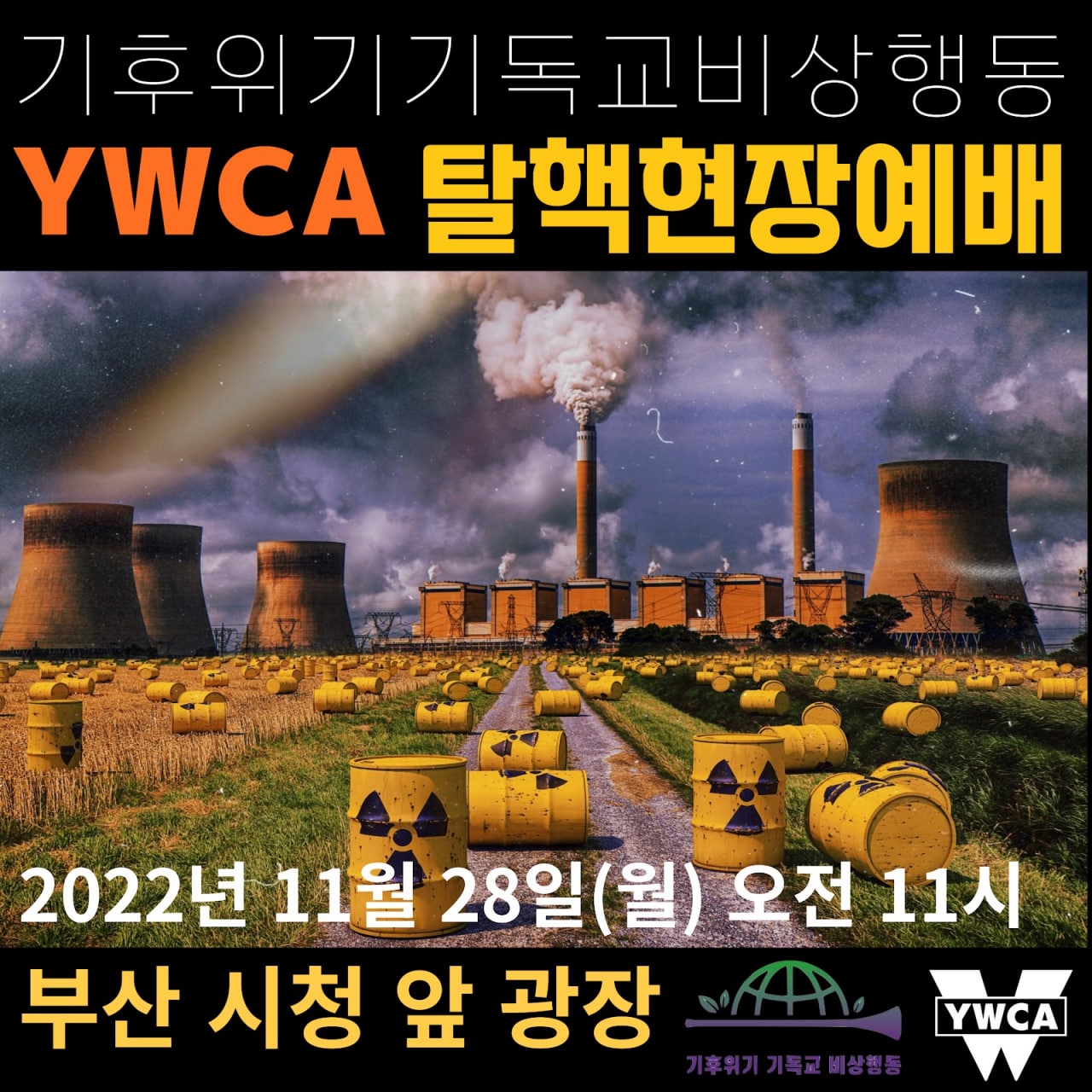 YWCA는 부산을 탈핵기후생명운동의 가장 시급한 현장으로 인식하고, 부산에 하나님의 정의가 회복되기를 위해 모이고자 합니다. 생명을 담보로한 핵발전에 반대하고 안전과 책임을 촉구하고자 하는 모두를 예배로 초대합니다!