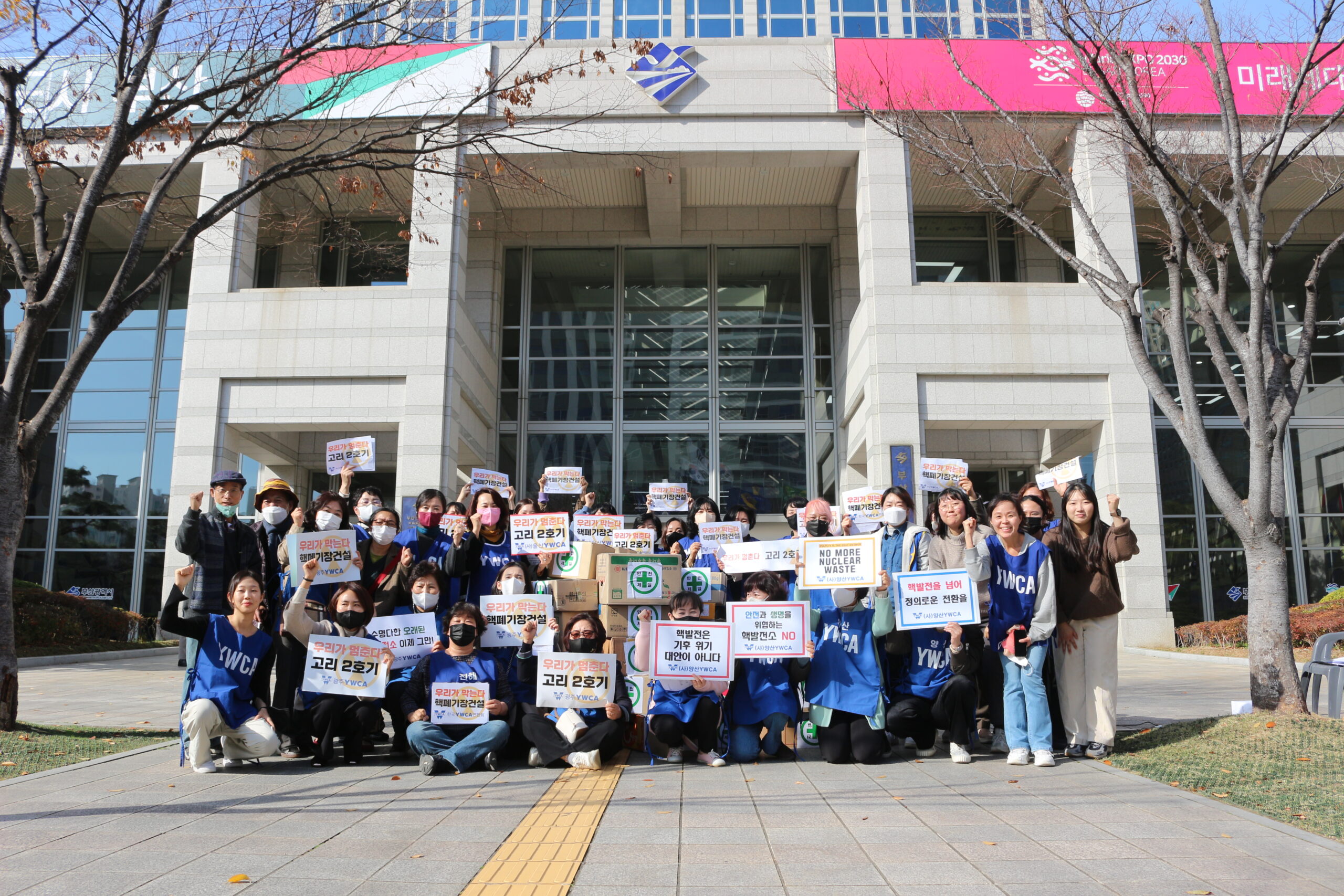 2022년 11월 28일 오전 11시 부산 시청 앞에서 탈핵현장예배가 진행되었다. 청(소)년, 여성, 지역의 입장에서 탈핵을 촉구하는 이번 현장예배는 대학청년Y, 부산YWCA, 한국YWCA연합회, YWCA 청년위원회, YWCA RE100위원회가 기획하였으며 본 예배에는 기후위기기독교비상행동 연대단체를 비롯한 전국의 10개 회원YWCA와 부산탈핵시민행동에서 현장으로 참석하였다.