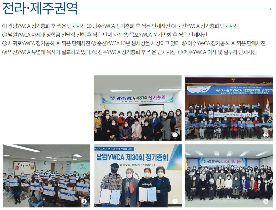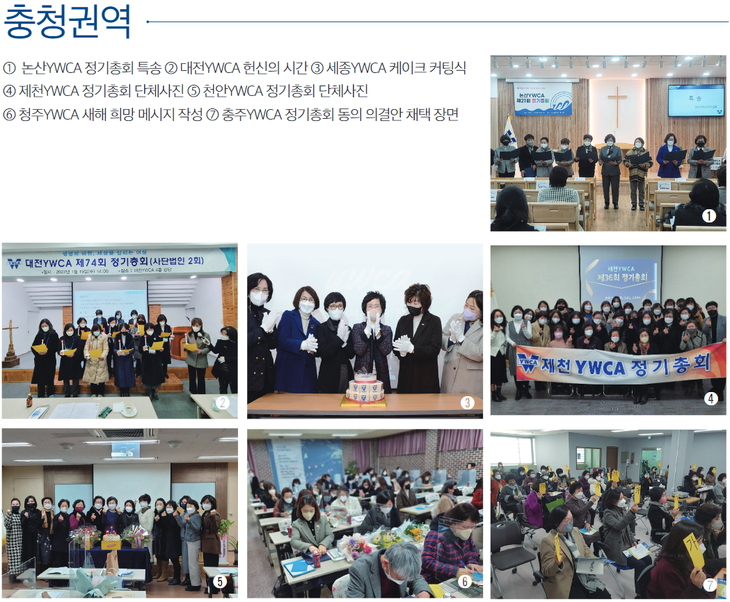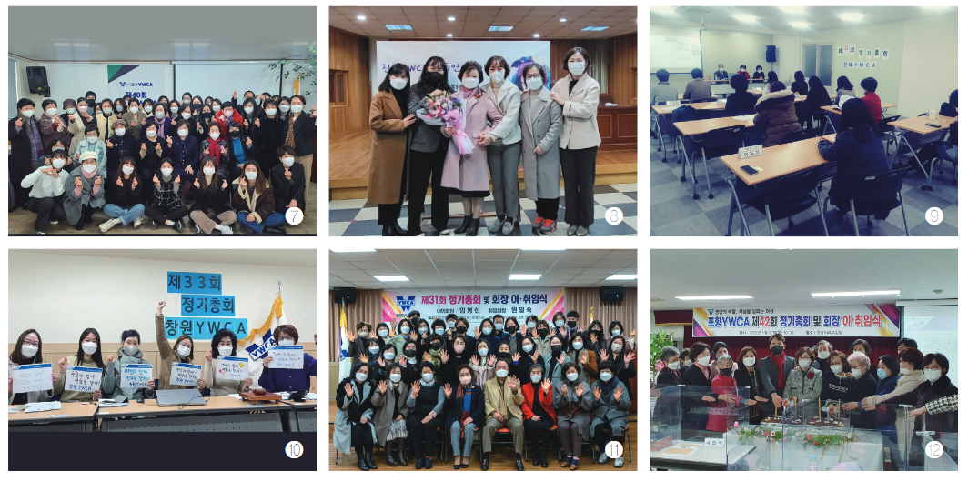 1월부터 2월 사이에 전국 52개 회원 YWCA는 정기총회를 열고 전년도 활동과 사업을 보고하고, 올해 진행할 사업계획과 예산을 승인했다. 또한 회원 YWCA를 대표하는 회장을 선출하는 시간도 가졌다.