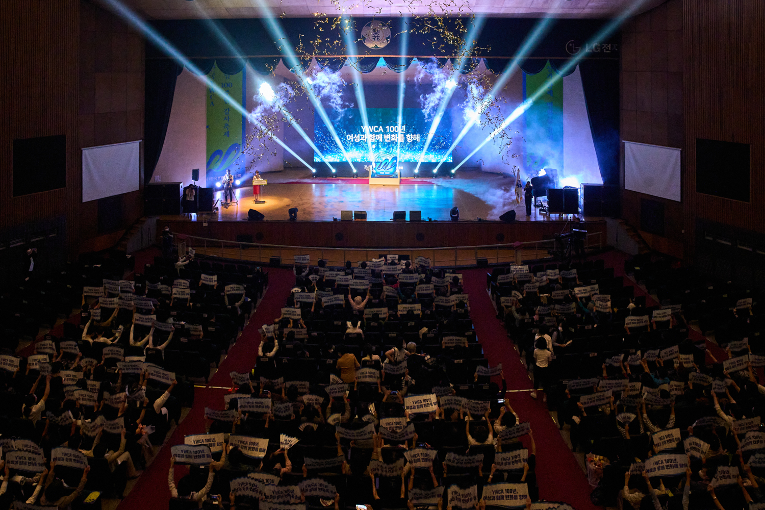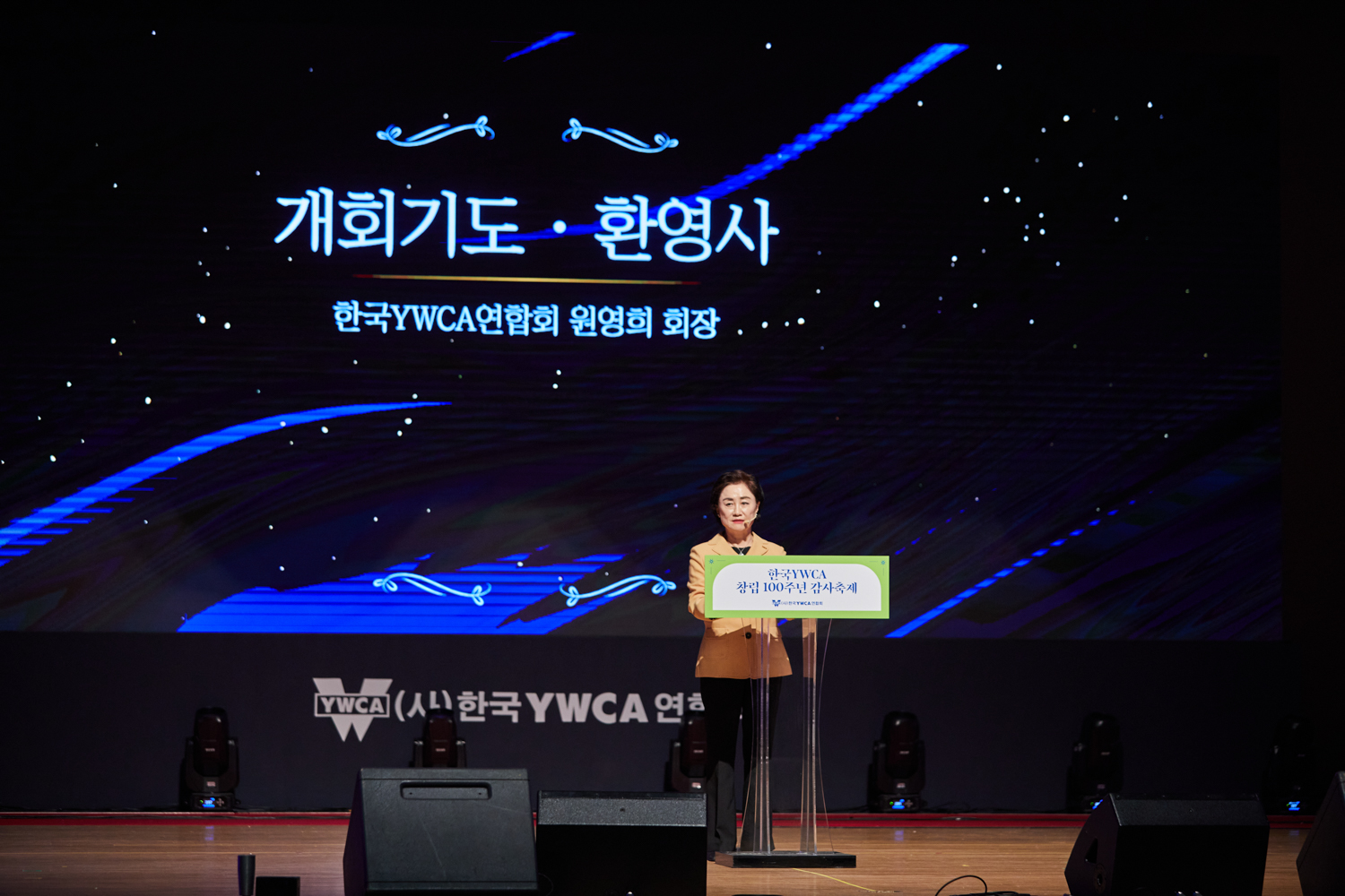 원영희 회장은 환영사에서 “한국YWCA 100년은 우리들만의 100년이 아니라 여성운동의 100년이요, 기독여성운동의 100년”임을 언급하며 “연합회와 52개 회원YWCA의 모든 활동가들과 회원들, YWCA의 정의, 평화, 생명운동에 함께해 주신 시민들이 함께 맞는 100주년” 임을 강조했다. 이날 감사축제는 100년의 여정에 함께한 자원활동가와 실무활동가, 봉사와 헌신으로 함께한 개인과 기관에 대한 시상식, 축하공연으로 이어졌으며, 마지막 퍼포먼스로 100주년 엠블럼( “YWCA 100주년, 여성과 함께 변화를 향해!”)을 전달하며 미래세대에게 100년 이후 YWCA가 순항하도록 기원했다.