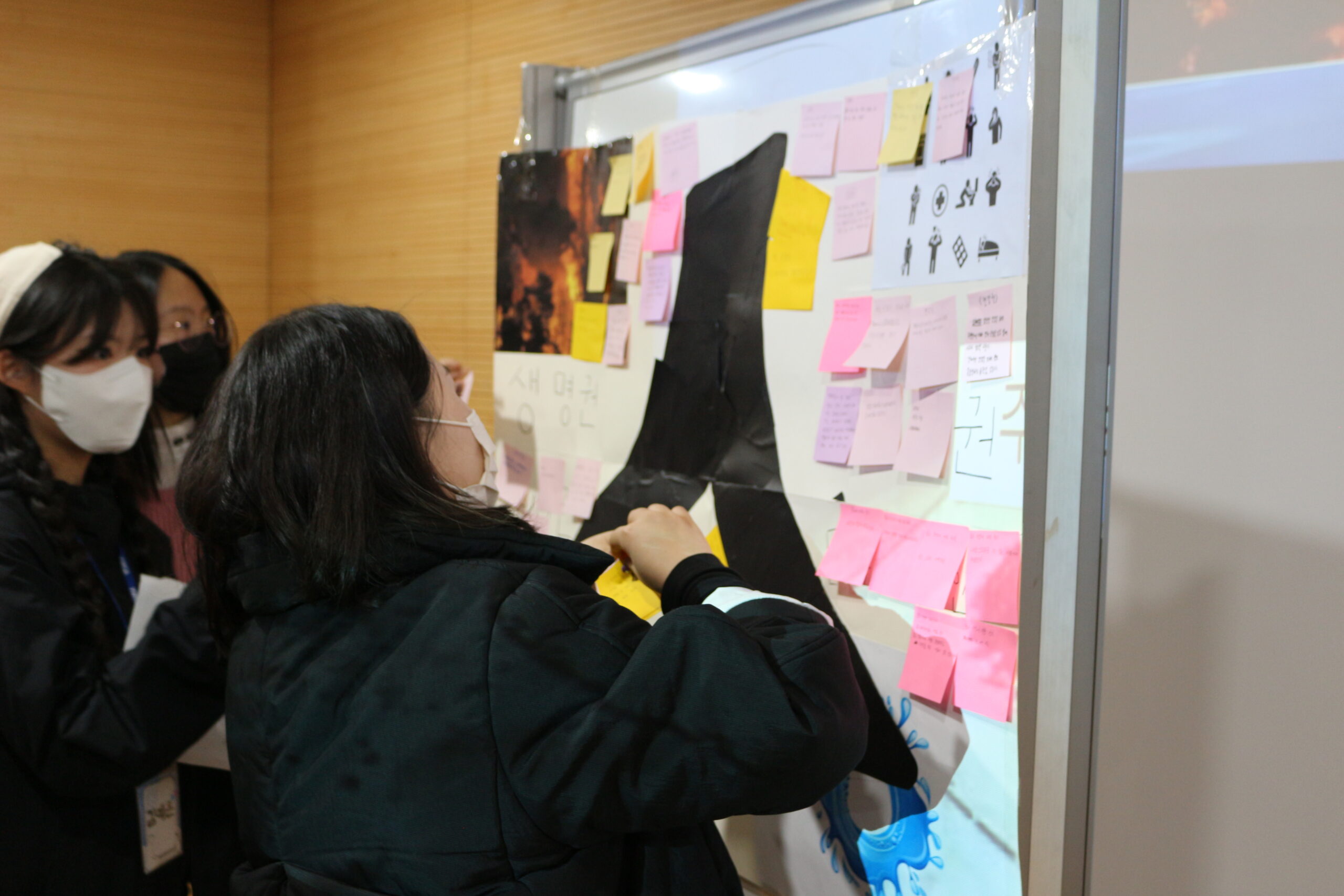 이후, Y-틴 청소년들은 2023년도 중점운동 선정을 위한 교육, 논의의 시간을 가졌다. 먼저 북부지역의 김태희(서울YWCA), 서유람(인천YWCA) 청소년이 ‘기후와 인권’을 주제로 청소년들의 기후운동의 필요성과 기후와 인권의 연관성에 대해 강연하였다. 서부지역 김예은(순천YWCA), 이다희(여수YWCA)는 같은 주제로, 청소년들이 실제적으로 진행할 수 있는 ‘기후와 인권’운동을 소개하고, ‘생명권’ ‘건강권’ ‘주거권’ ‘물과 위생에 대한 권리’를 침해하는 기후문제의 해결책을 찾는 포스트잇 붙이기 활동을 전개하였다.