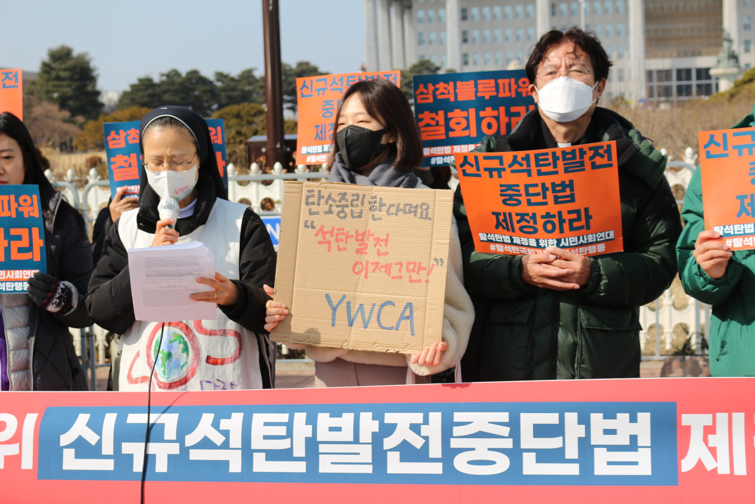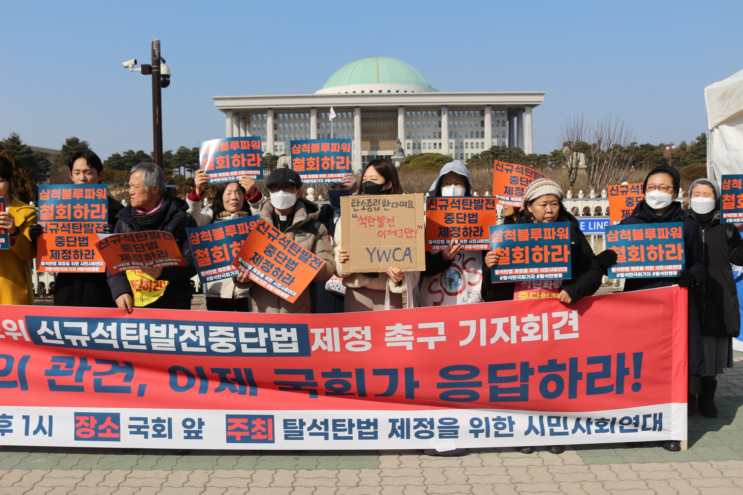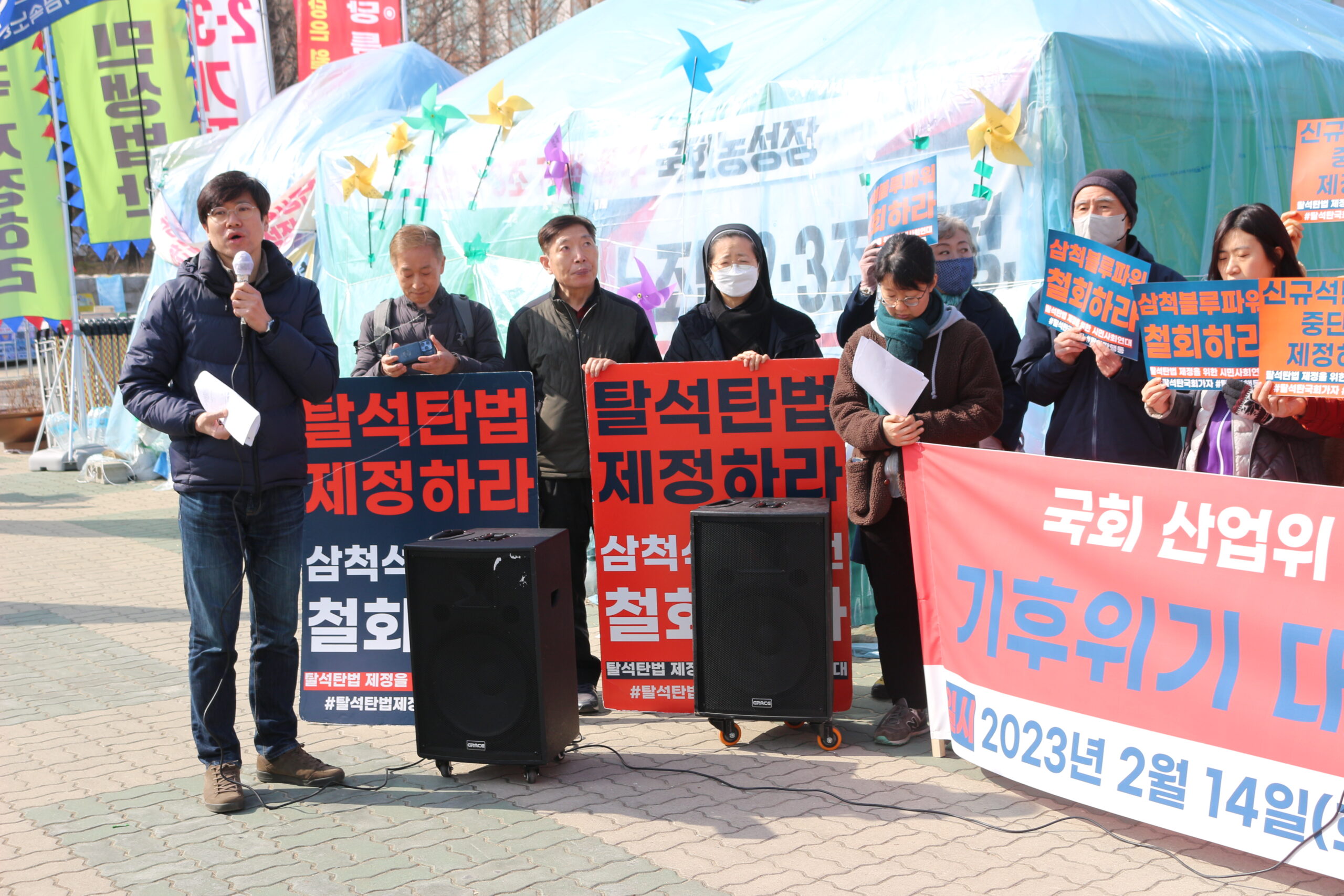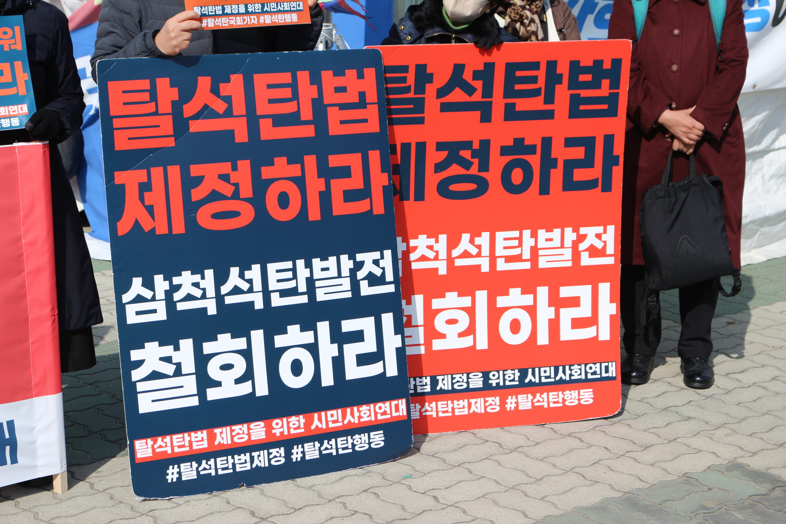 탈석탄법연대는 5만 국민청원을 입법화하기 위해 새로운 법안을 직접 성안하여 국회에 제안하였다. ‘건설중인 석탄발전소 사업의 철회 및 신규 허가 금지를 위한 법(약칭 신규석탄발전중단법)’이 그것이다. 날로 기후위기가 심각해지고, 지금도 삼척에서 석탄발전소 공사가 진행되고 있다. 이번 21대 국회의원의 임기가 1년 남짓 남았다. 시간이 많지 않은 만큼 빠르게 건설중인 석탄발전소를 중단시킬 수 있는 법 제정이 필요하다. 오늘 청원소위를 시작으로 국회는 시민사회가 제안한 신규석탄발전중단법 입법논의를 신속히 진행해야 할 것이다.