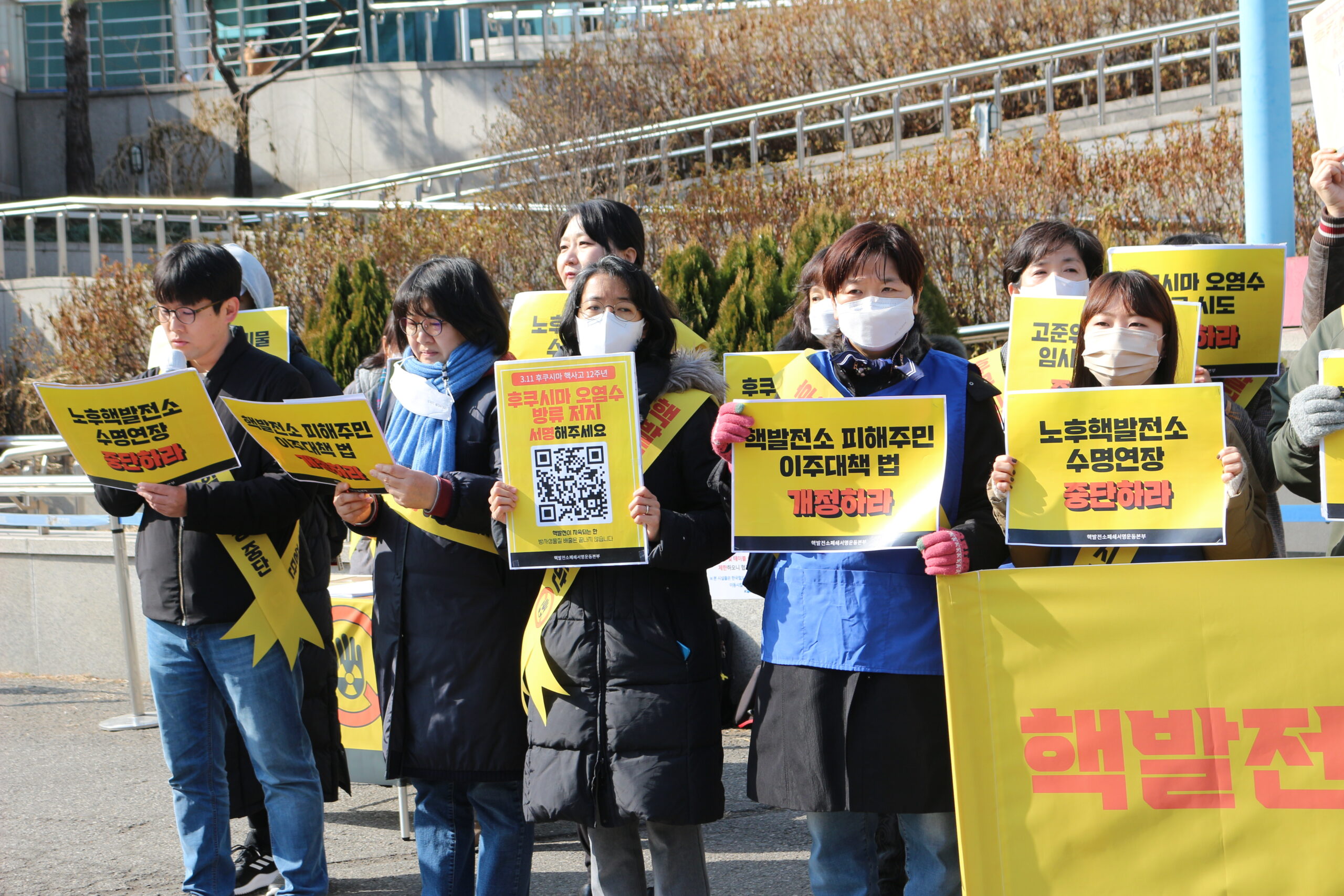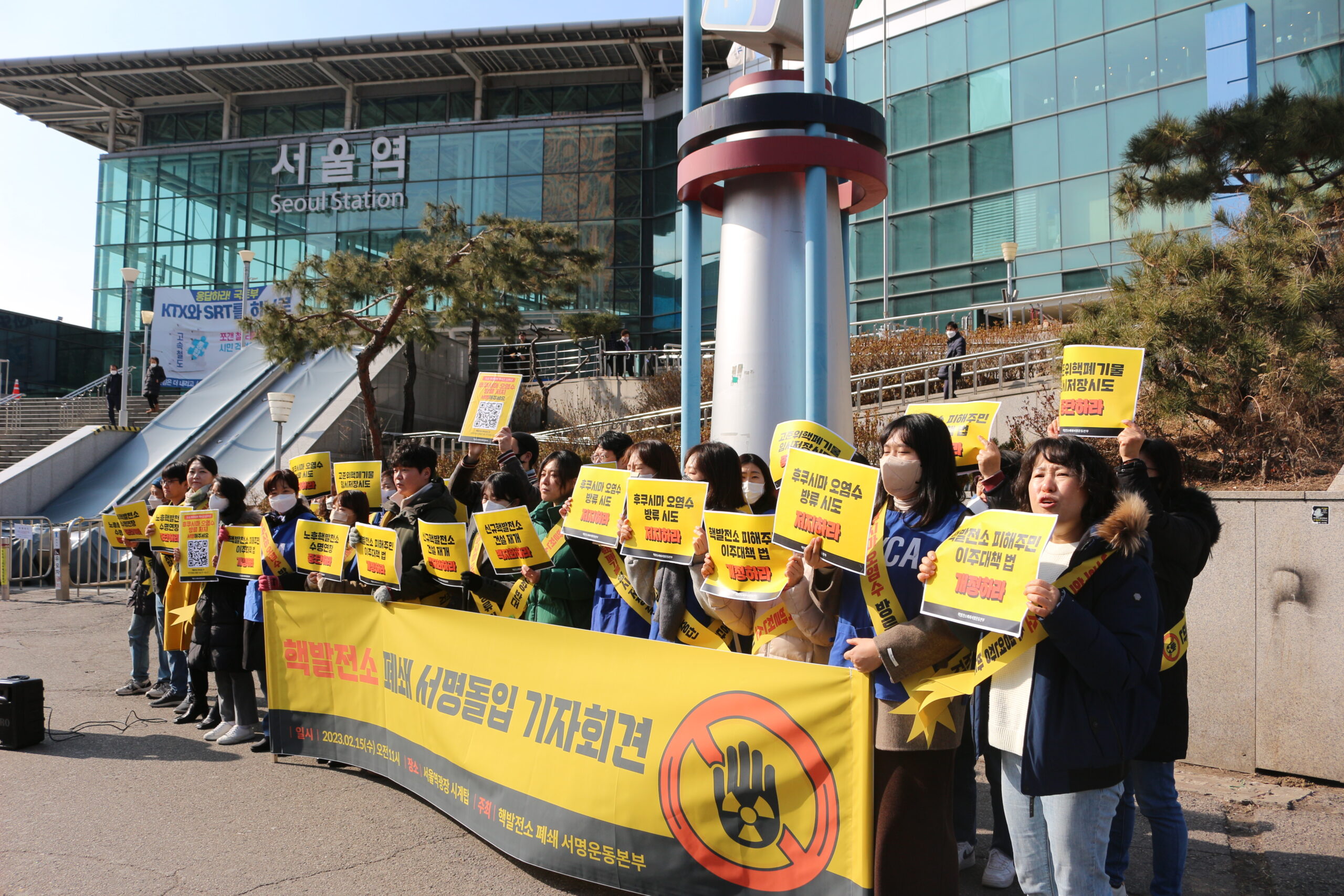 지난 12월 발족한 ‘핵발전소폐쇄서명운동본부’의 캠페인 개진 기자회견이 2월 15일 서울역에서 진행되었습니다. 한국YWCA연합회를 포함한 운동본부 소속 101개 단체의 요구는 다음과 같습니다. △노후핵발전소 수명연장 중단, △신규핵발전소 건설 백지화, △고준위핵폐기물 임시저장 시도 중단, △일본 후쿠시마 방사성 오염수 방류계획 저지, △핵발전소 피해주민 이주대책 법 개정 입니다.