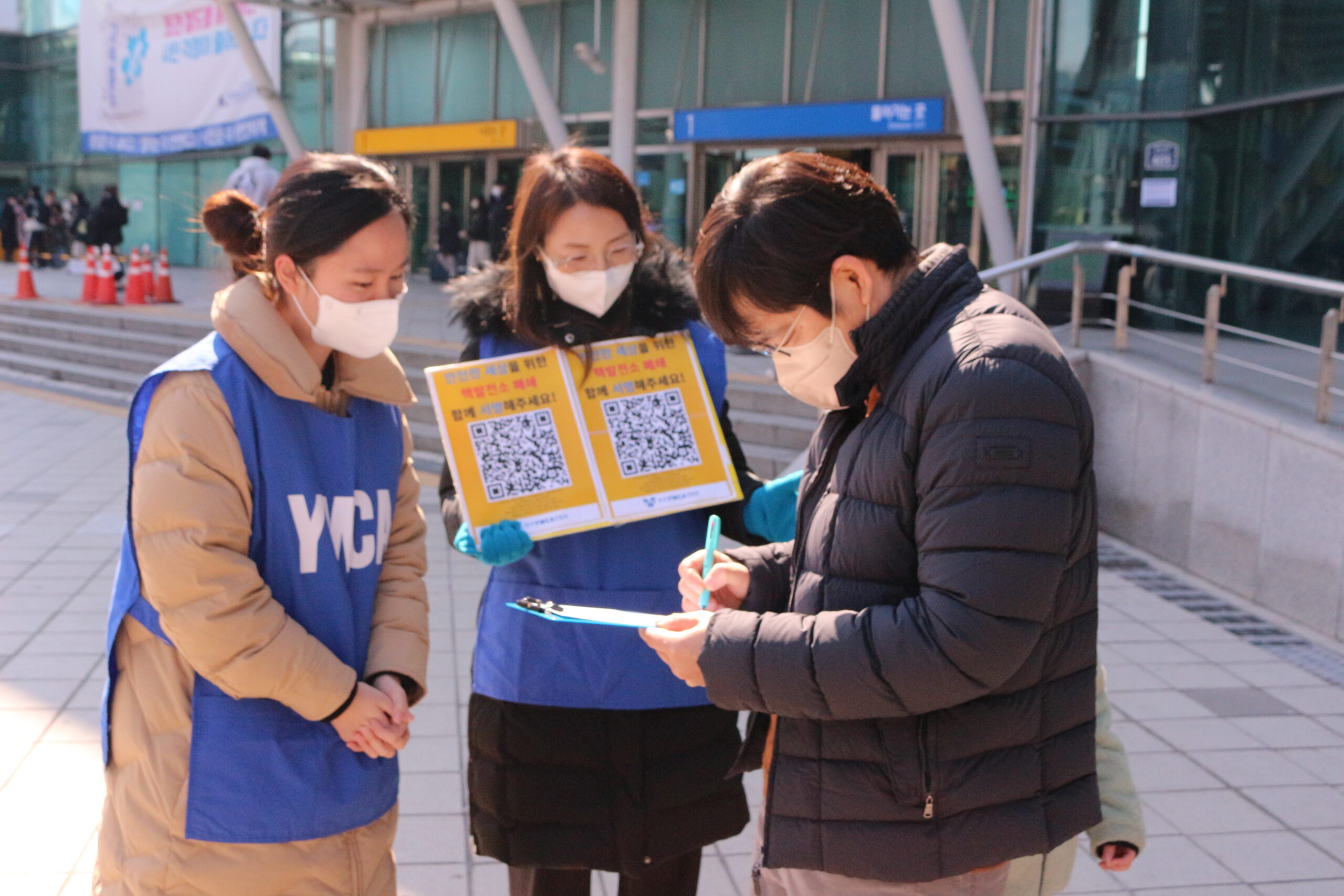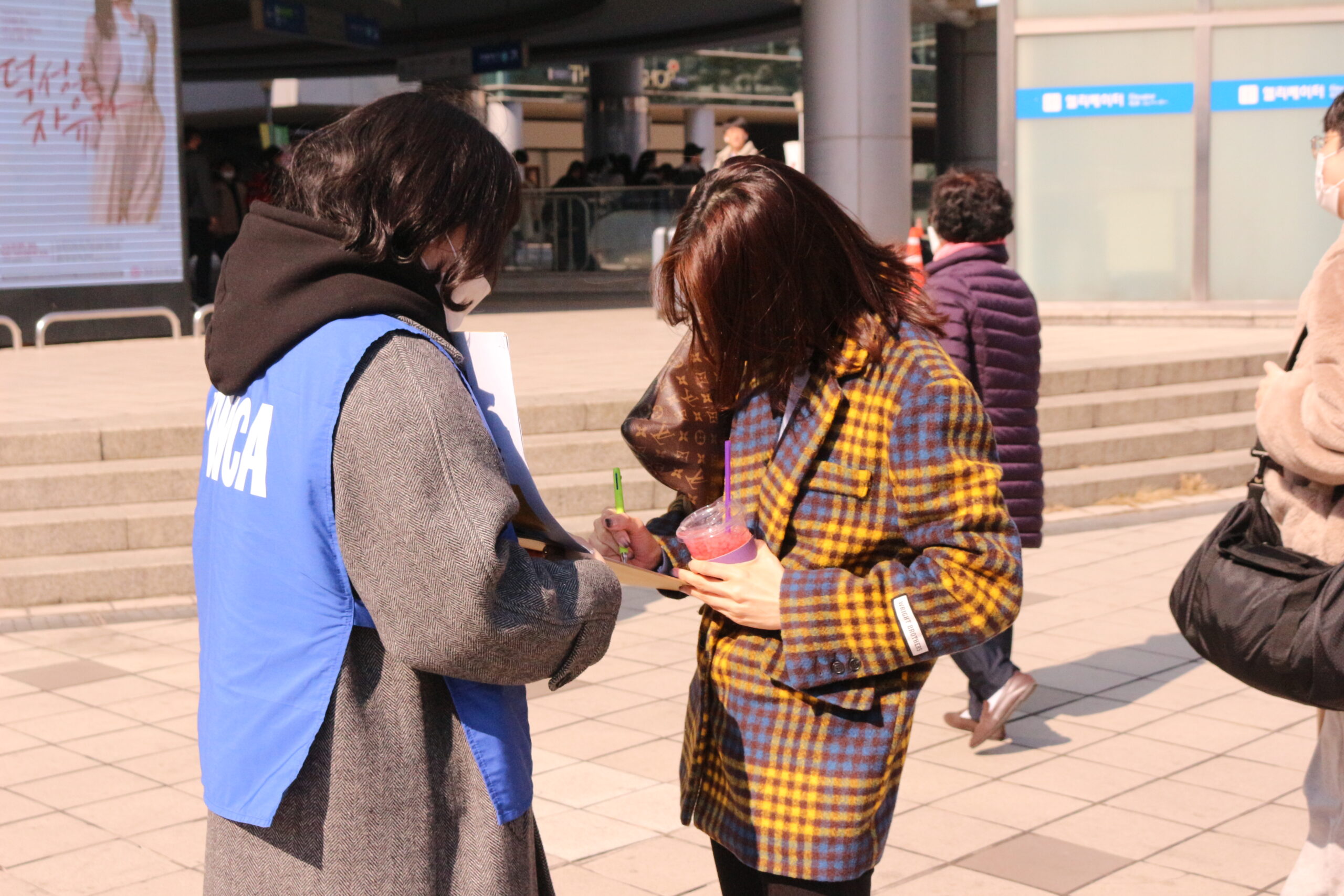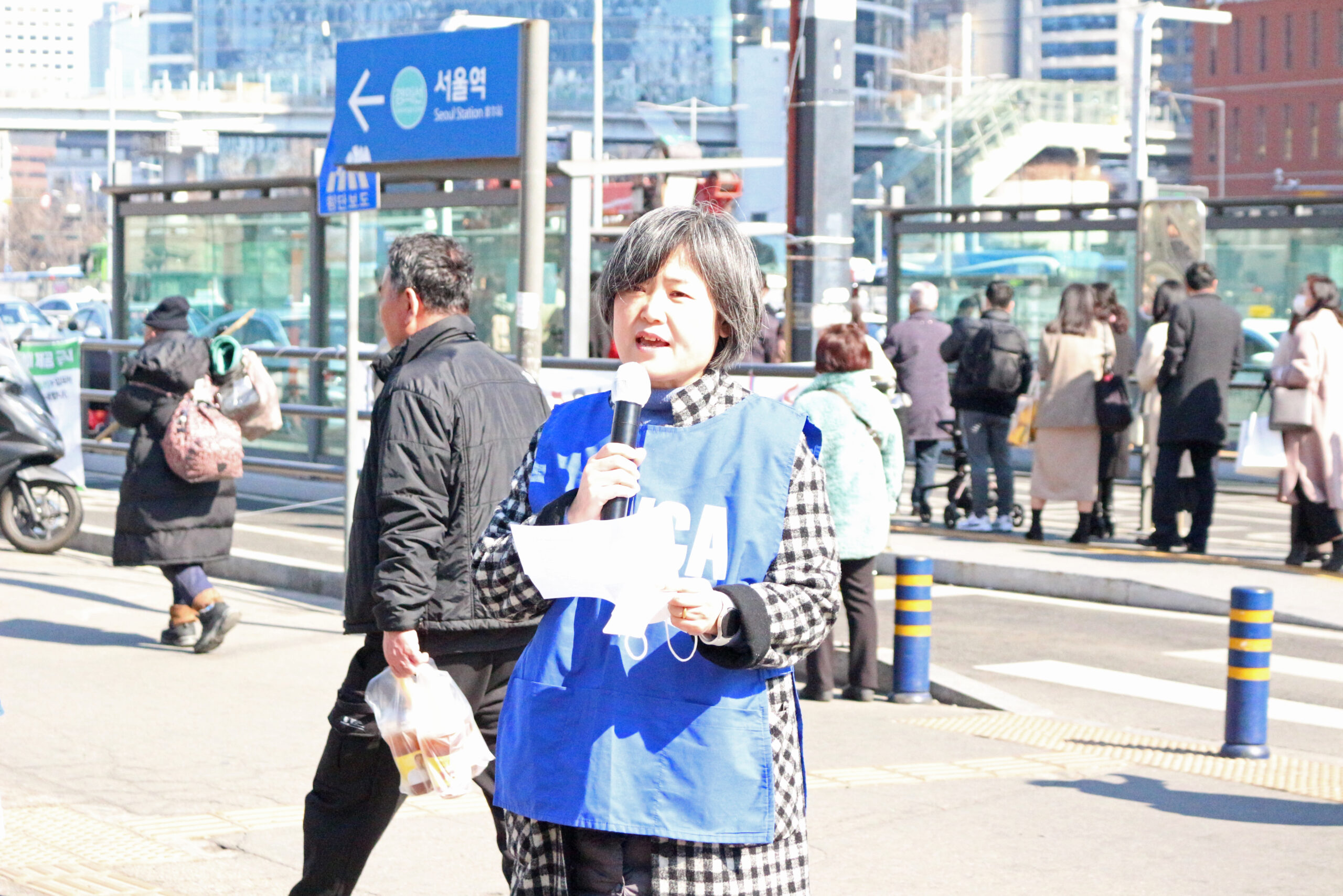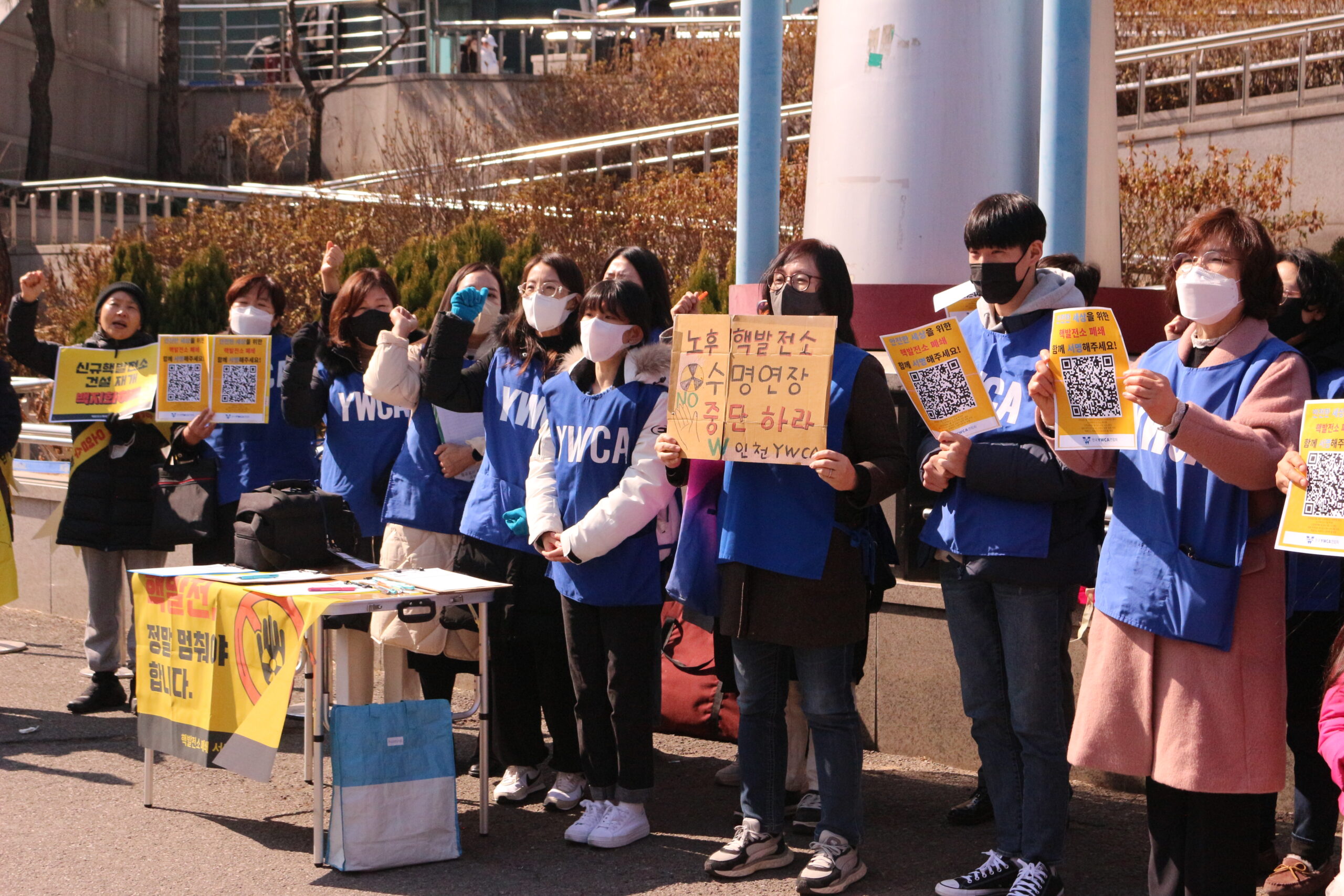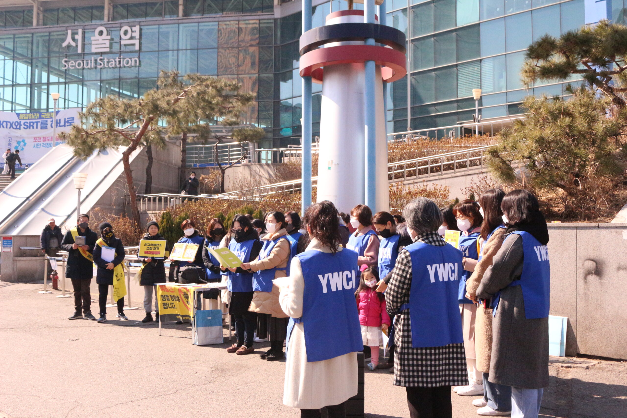 2월 27일(월) 한국YWCA는 핵발전소폐쇄를 위한 서명캠페인을 서울역 광장에서 진행하였습니다. YWCA에서 직접 주관하여 진행한 이번 핵발전소폐쇄 서명캠페인을 위해서 각 지역YWCA에서도 아침 일찍부터 서울역으로 모여 주셨습니다.