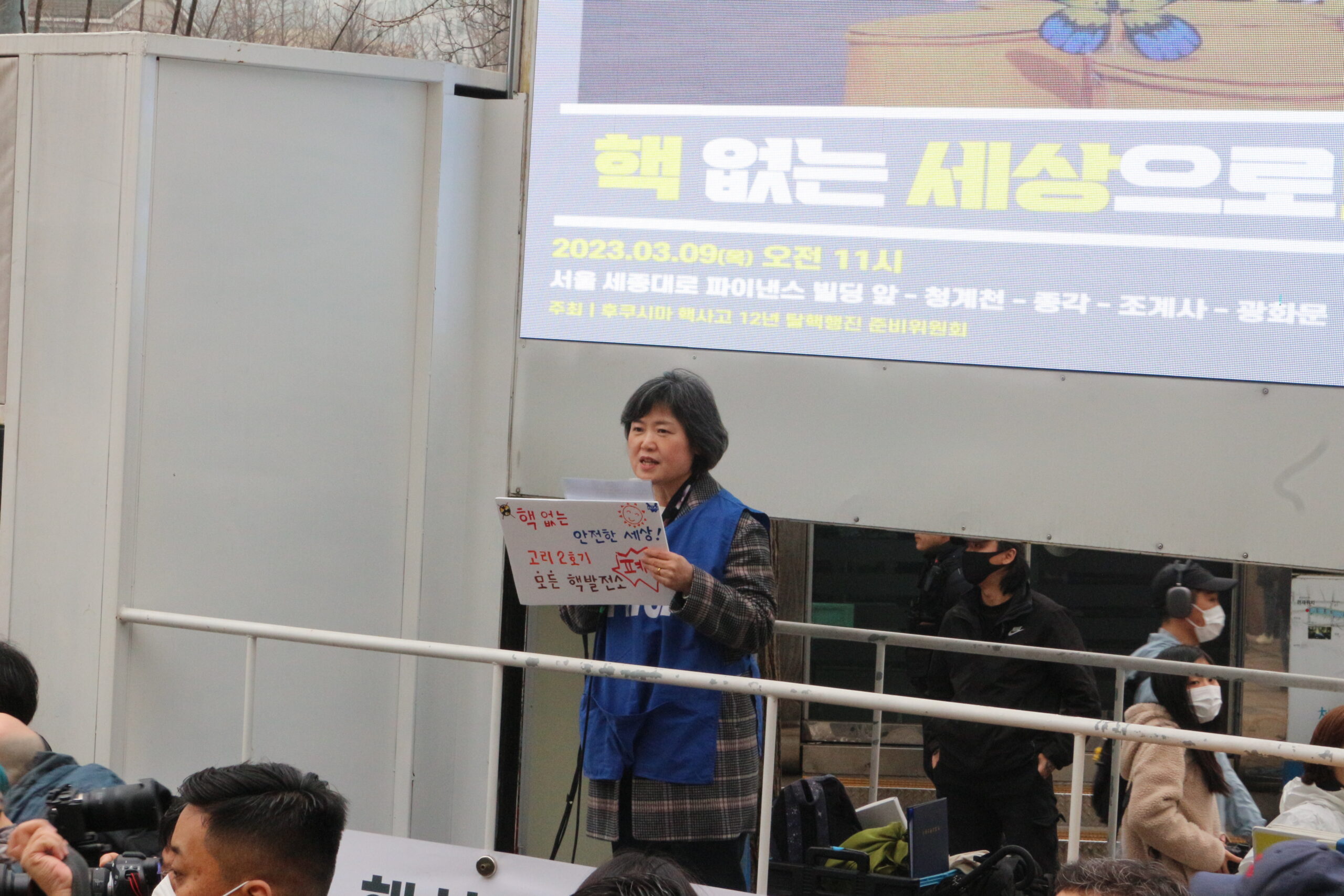 발언을 맡은 구정혜 한국YWCA연합회 사무총장은 “한국YWCA회원들은 매주 화요일 명동 성당 앞에서 ‘탈핵 불의 날 캠페인’을 통해 시민들에게 핵발전의 위험을 알렸으며, 고리1호기 폐쇄를 위한 YWCA 10만 회원 서명운동을 전개하여 2015년 고리1호기 폐쇄 결정을 함께 이루어냈”음을 강조하며 “한국YWCA연합회와 부산YWCA를 비롯한 전국 52개의 YWCA 활동가들이 핵 없는 세상을 향해 계속해서 함께 전진할 것”이며 “시민의 힘으로 고리2호기 폐쇄를 이루어내기 위해 힘을 모을 것”을 요청했습니다.
