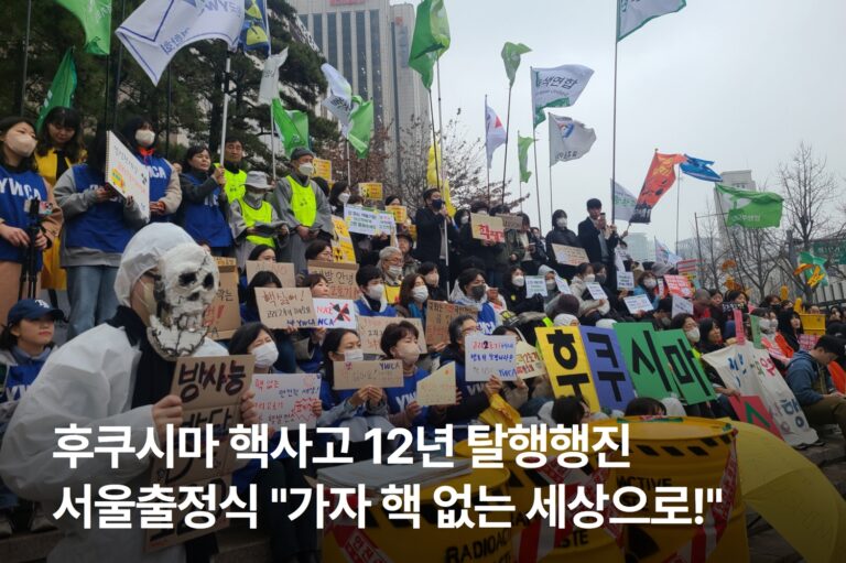 후쿠시마 핵사고 12년 탈행행진 서울출정식 “가자 핵 없는 세상으로!” 오늘(3월 9일) 후쿠시마 핵사고 12년 탈핵행진 <서울 출정식 – 행진하자, 핵없는 세상으로!>가 서울 파이낸스 빌딩 앞에서 열렸습니다. 본 행진은 토요일 … 후쿠시마 핵사고 12년 탈행행진 서울출정식 “가자 핵 없는 세상으로!” 계속 읽기