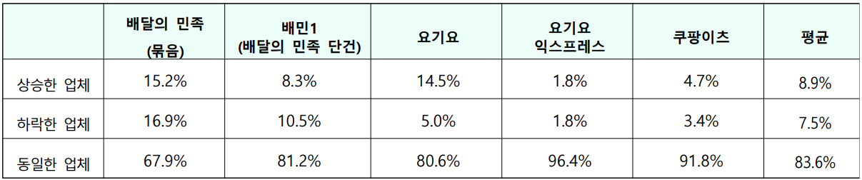 <표 2. 1월 대비 3월, 동일 업체 배달비 변동 비교 결과>