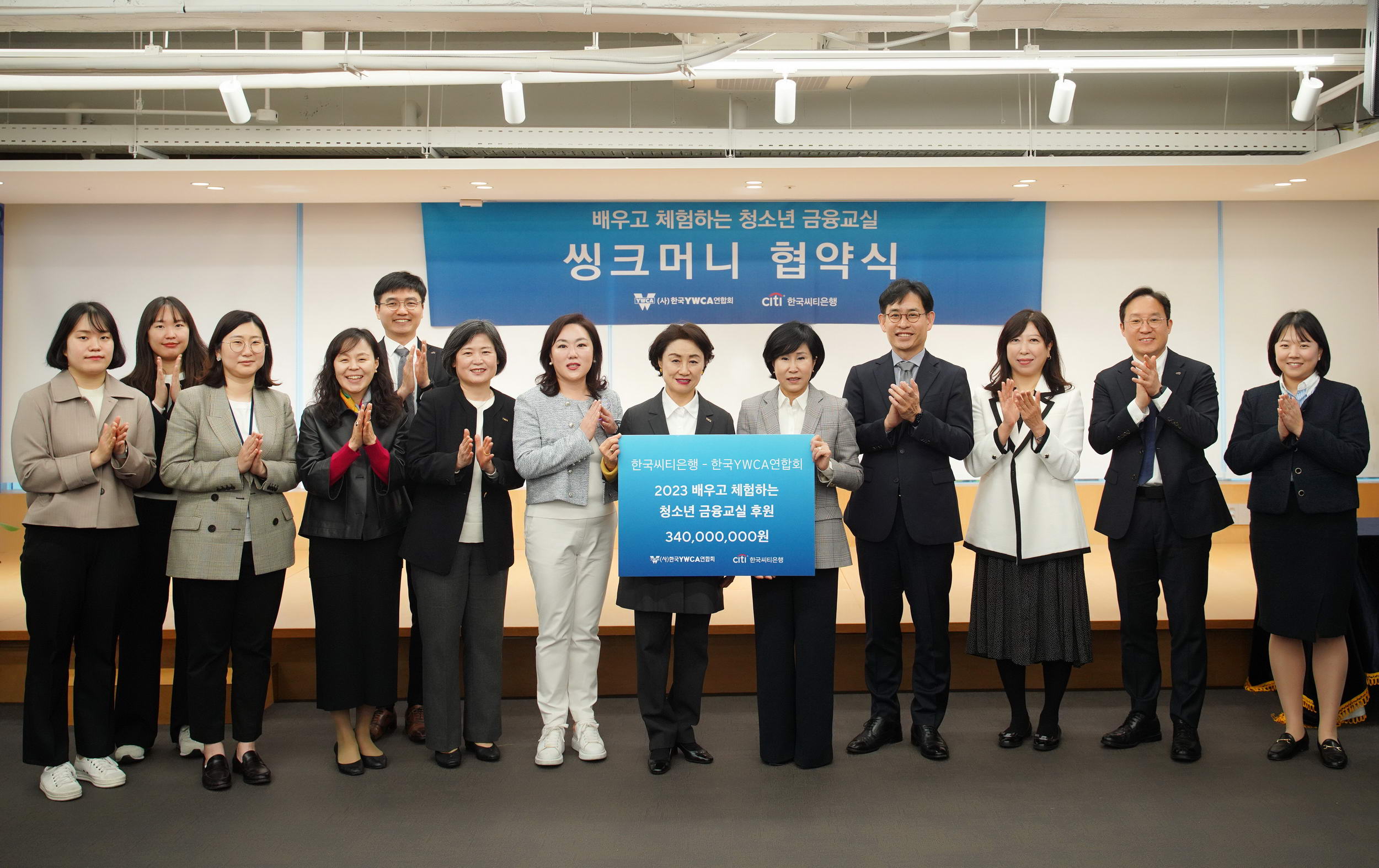 유명순 한국씨티은행 은행장은 원영희 한국YWCA연합회 회장에게 씨티재단 후원금 3억 4천만원(25만달러)을 전달했습니다. 2006년 시작되어 올해로 18년 차를 맞는 <배우고 체험하는 청소년 금융교실-씽크머니>는 청소년의 올바른 금융가치관 및 셀프리더십 개발을 목표로 하며, 올해는 전국 23개 회원YWCA에서 학교, 지역아동센터, 청소년 시설 등을 통해 금융교실을 운영합니다. 전문적이고 체계화된 강사교육을 이수한 회원YWCA 금융교육 강사 및 한국씨티은행 임직원으로 구성된 씽크머니 금융강사들은 초·중·고등학생은 물론 지역의 다양한 취약소외계층에게 교육을 확대하여 지식과 태도, 행동의 변화까지 이끌어내는 금융교육을 실시해왔습니다.