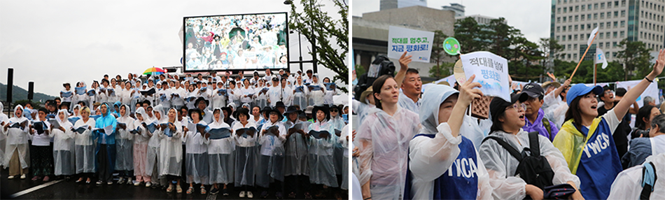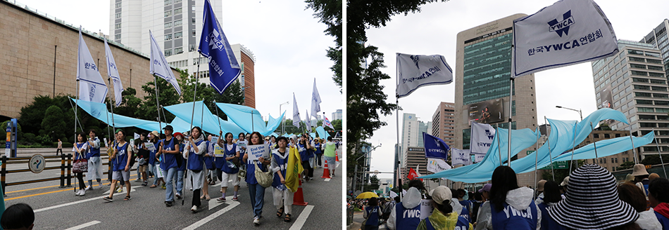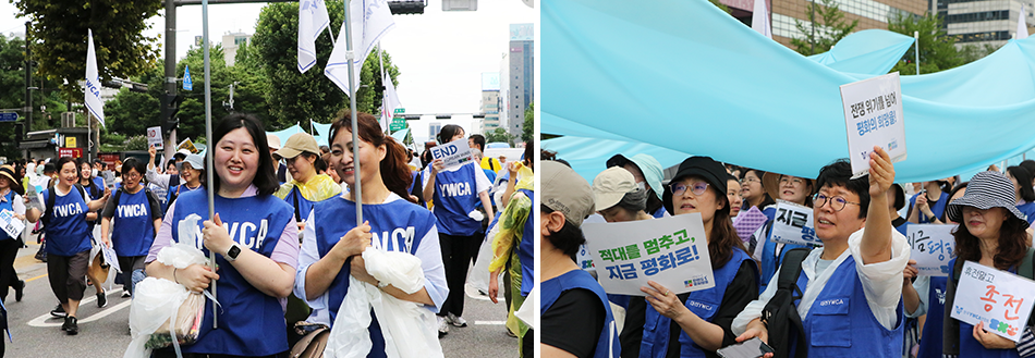 한국YWCA는 원영희 연합회 회장을 비롯해 총 100여 명의 활동가가 행사에 참여했다. 연합회 및 16개 지역 YWCA 활동가들이 서울광장과 광화문에서 한반도 평화를 염원하는 목소리를 높였다(광주, 군산, 남양주, 대전, 부천, 서울, 성남, 세종, 속초, 수원, 안산, 안양, 의정부, 천안, 청주, 파주YWCA).
