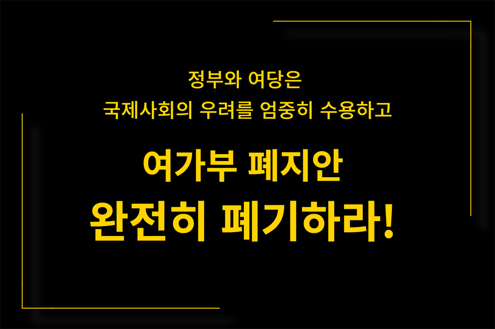 정부와 여당은 국제사회의 우려를 엄중히 수용하고 여가부 폐지안 완전히 폐기하라!