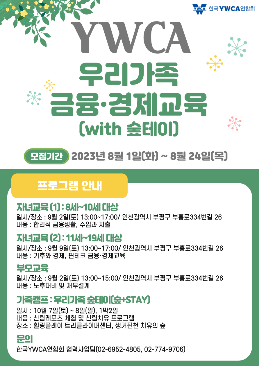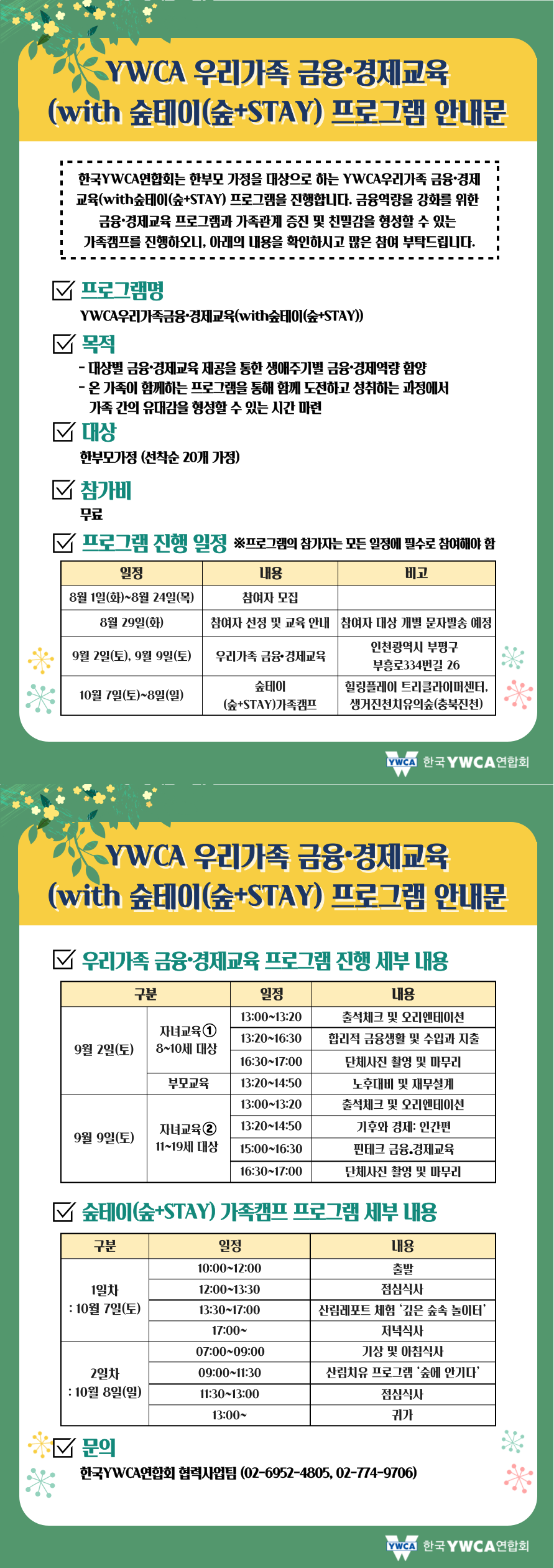 - 1. 행사명 : YWCA우리가족 금융·경제교육(with숲테이(숲+STAY))