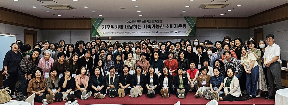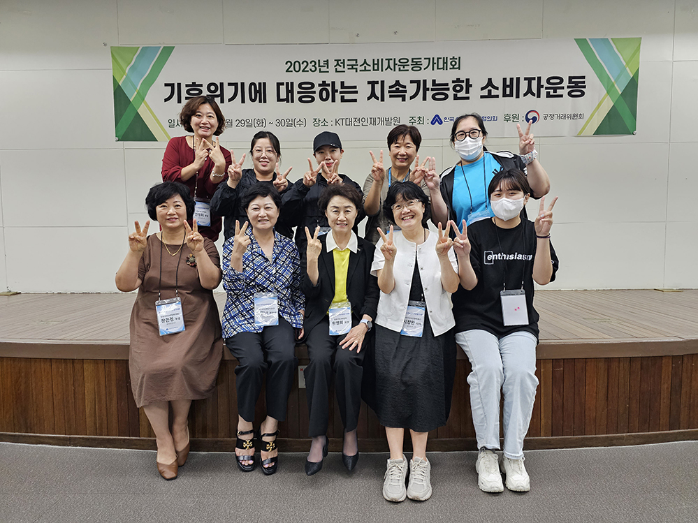 2023 전국소비자운동가대회가 8월 29일(화)~30일(수) 이틀간 대전 KT인재개발원에서 ‘기후위기에 대응하는 지속가능한 소비자운동’을 주제로 진행됐다. 이번 대회에는 한국소비자단체협의회 12개 단체 활동가 200여 명이 참석했다. 한국YWCA는 원영희 연합회 회장을 비롯 연합회, 대전, 목포, 세종, 울산, 진해YWCA 활동가 총 14명이 함께했다.