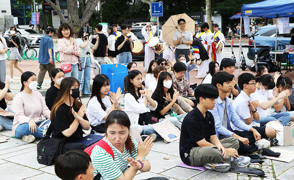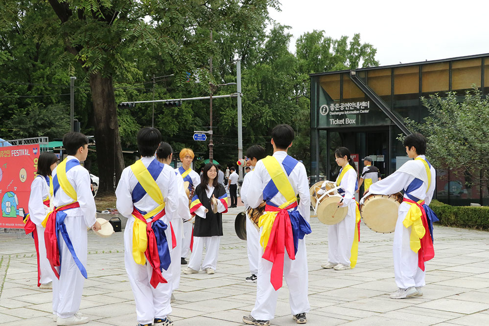 서울Y-틴 신해민도 “남에게 떠넘기는 일은 이제 그만해야 한다”며 “눈 앞의 이익을 위해 지구를 파괴하며 남에게 그 해결을 떠넘기는 행위, 더 나은 삶이라고 거짓말하며 더 많은 사람들을 고통에 빠지게 하는 행위. 이런 행위들은 모두 멈춰져야 한다”고 외쳤다. 두 청소년들의 진심어린 발언은 마로니에 공원 산책을 나온 시민들이 발걸음을 멈추고 이를 경청하게 했다. 뒤이어 청계자유 발도르프 학교 풍물패의 공연이 계속되자 멀리서 행사를 지켜보기만 하던 시민들까지 박수를 치며 흥겹게 페스티벌에 함께했다.
