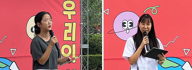 행사의 진행을 맡은 Y-틴 전국협의회의 회장 김민선과 대구Y-틴 홍혜진은 “우리 청소년이 생각하고 느낀 기후위기를 우리의 언어로 표현하겠다”며 기후정의라는 다소 무거울 수 있는 주제를 “이번 축제에서 재미있게 풀어나가겠다”고 전했다.