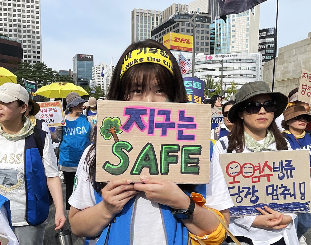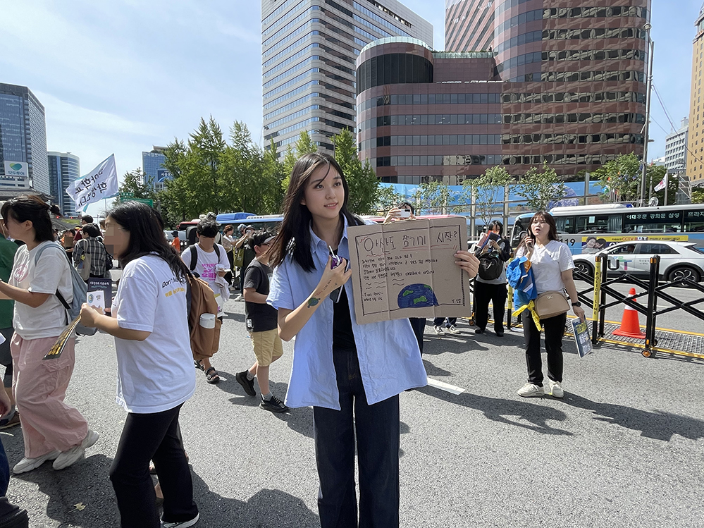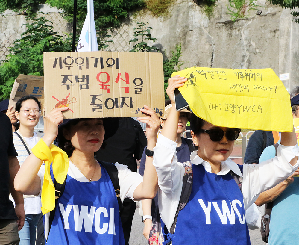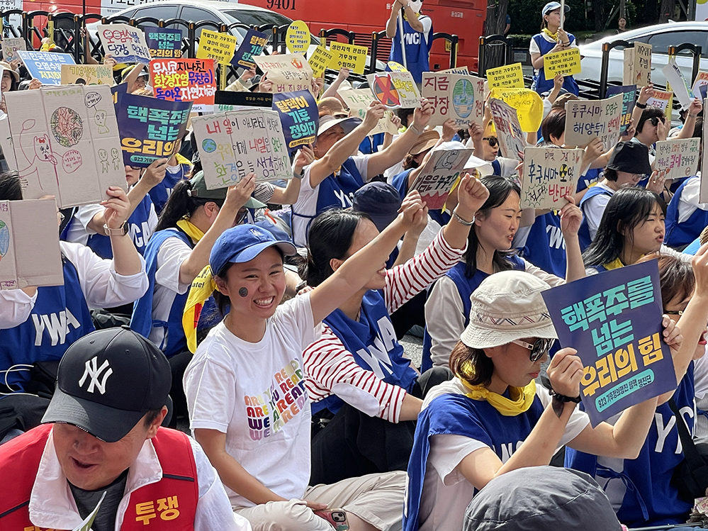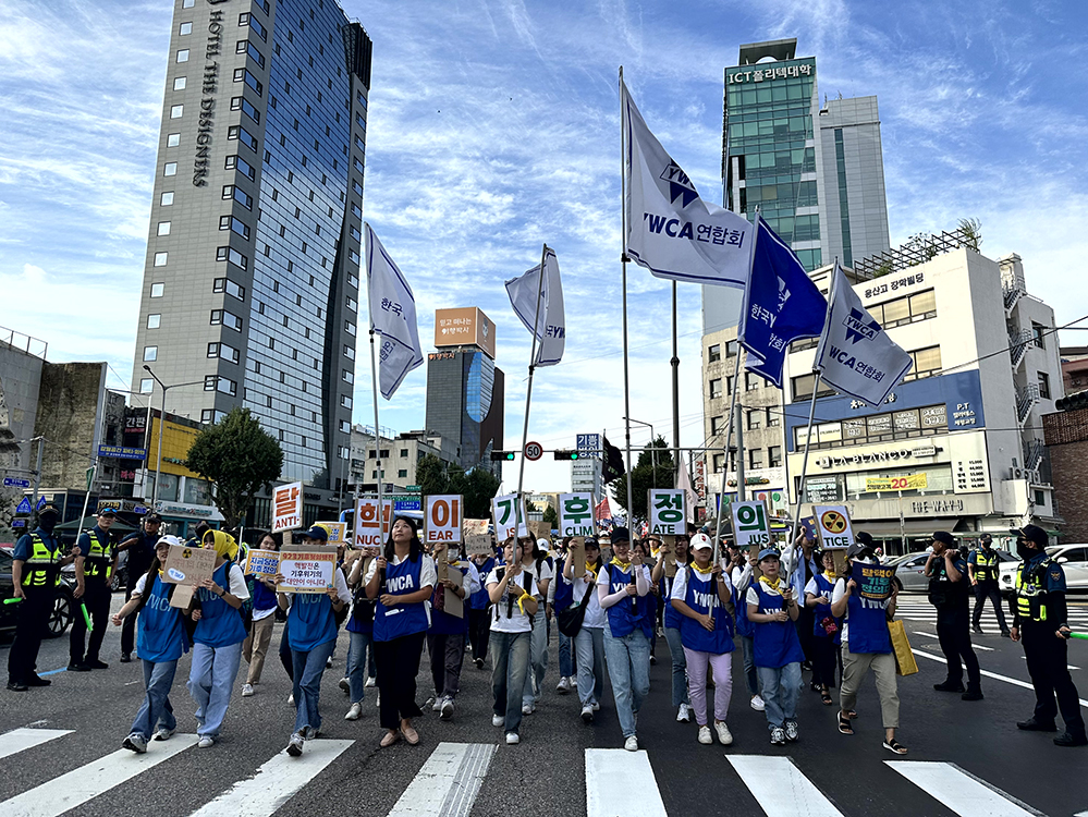 집회 후 참가자들은 서울 시청-숭례문 일대에서 출발해 서울역→남영역→용산집무실에 도착하는 1코스와 서울시청→SK본사→일본대사관→서울정부청사에 도착하는 2코스로 나뉘어 행진했다. 한국YWCA는 1코스에 참여해 “성평등 기후정의” “탈핵으로 기후정의”를 외치며 시민들의 기후정의 움직임에 동참하기를 요청했다.