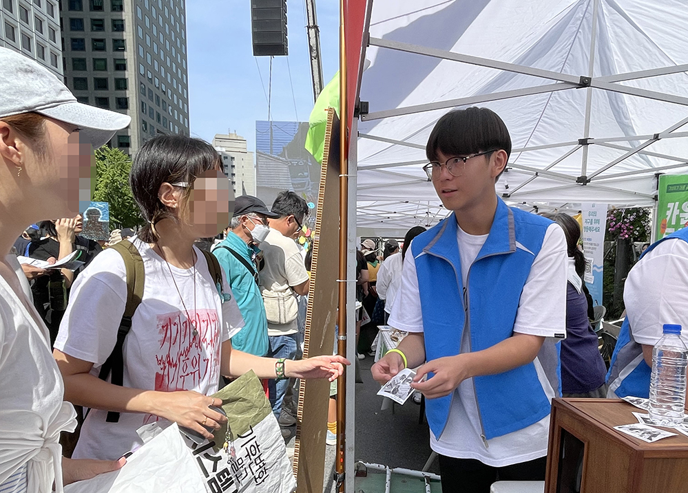 923 기후정의행진은 오후 12시 연대단체들이 준비한 사전행사인 부스와 오픈마이크로 시작됐다. 한국YWCA는 Y-틴이 ‘나는 어떤 기후활동가? 기BTI’ 부스를 운영해 행진 참가자들의 큰 호응을 얻었다. 한국YWCA 부스에서는 자신에게 맞는 기후활동을 찾아보는 ‘기후활동 유형 검사 기BTI’, Y-틴이 직접 만든 타투 스티커 무료 배포, 흑백 사진 찍기 프로그램이 진행됐다.