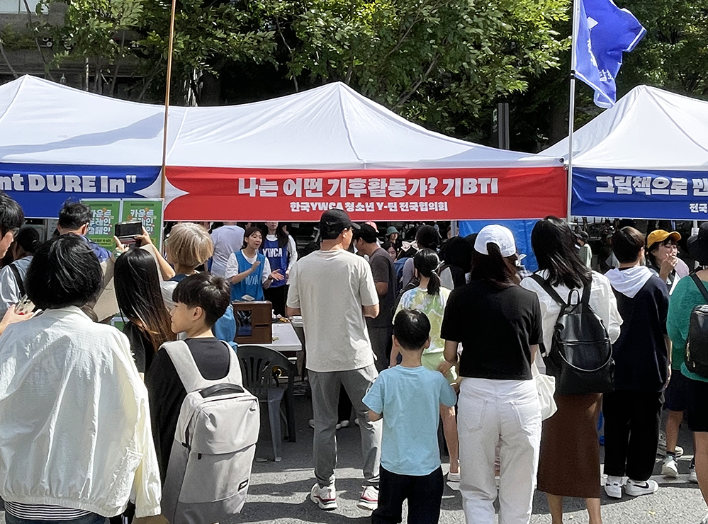 ▲Y-틴이 운영하는 한국YWCA 부스 ‘나는 어떤 기후활동가? 기BTI’가 운영 시작인 오후 12시부터 문정성시를 이뤘다.
