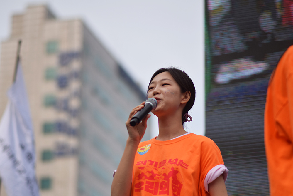 ▲집회 사회를 맡은 유에스더 한국YWCA연합회 활동가.