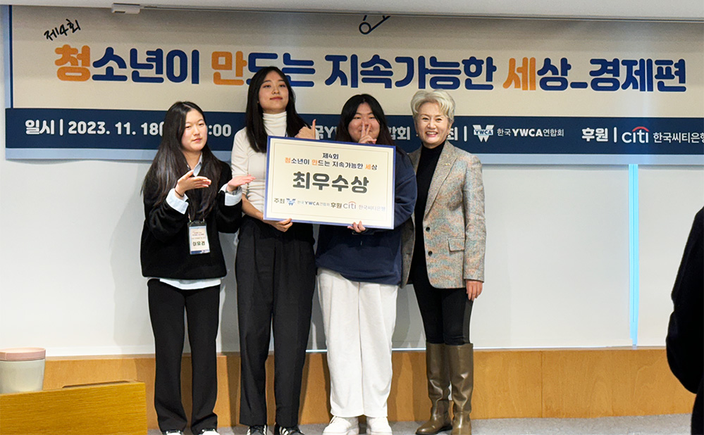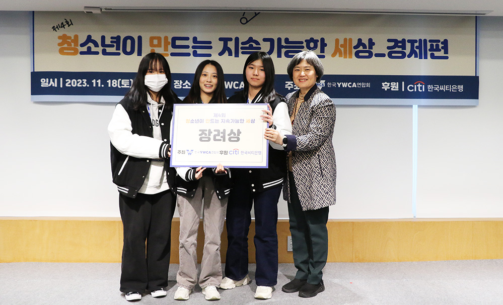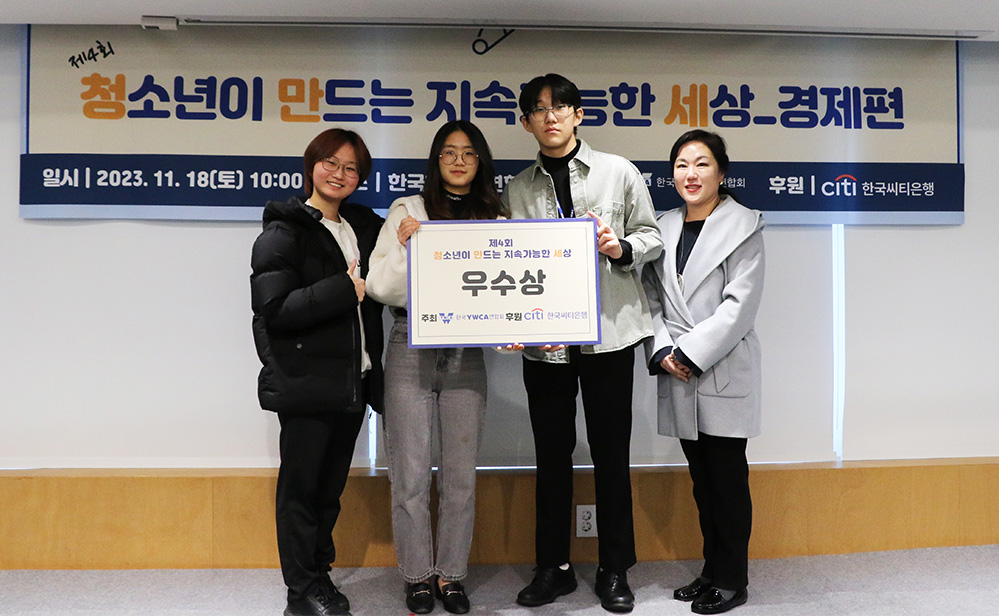한국YWCA연합회(회장 원영희)가 주관하고, 한국씨티은행(은행장 유명순)이 후원하는 ‘ 제 4회 청소년이 만드는 지속가능한 세상_경제편’ 대회가 11월 18일(토) 한국YWCA연합회(페이지명동)에서 개최되었다.