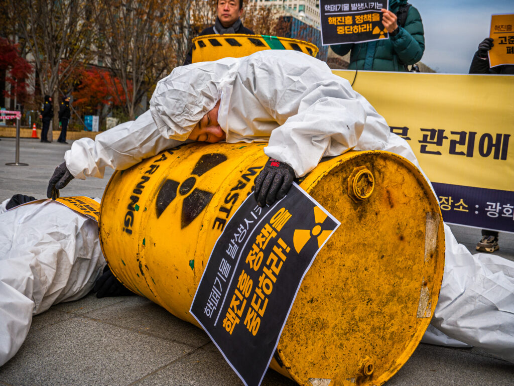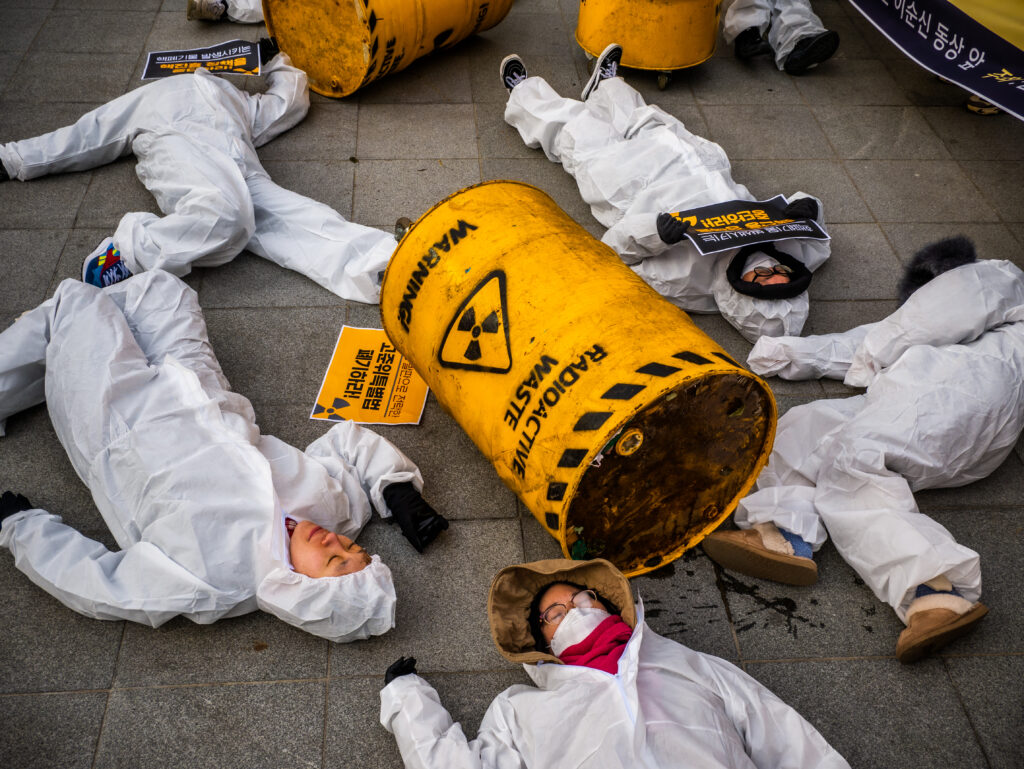 ▲핵폐기물 퍼포먼스를 평치는 활동가들