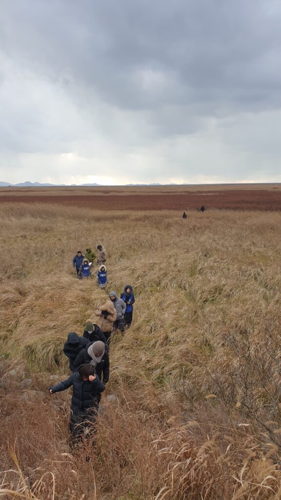 죽은 조개의 흔적들, 아직 살아 꽃피우는 염생식물들, 보금자리로 돌아가는 민물가마우지를 보며 참여자들은 창조세계의 아름다움을 느끼고  아직 살아있는 수라갯벌과 함께 숨 쉬었다.