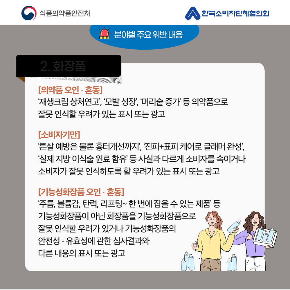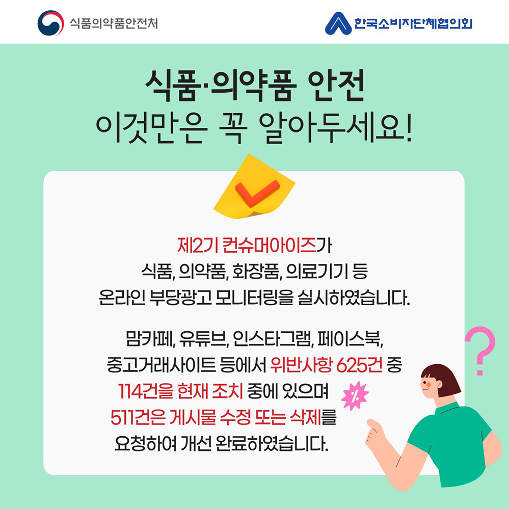 한국YWCA연합회를 비롯해 한국소비자단체협의회 12개 단체는 2022년에 이어 올해 5월부터 7월까지 3개월간 소비자단체가 함께 식품, 화장품, 의약품의 불법유통 및 과대·과장광고를 모니터링 하였다.
