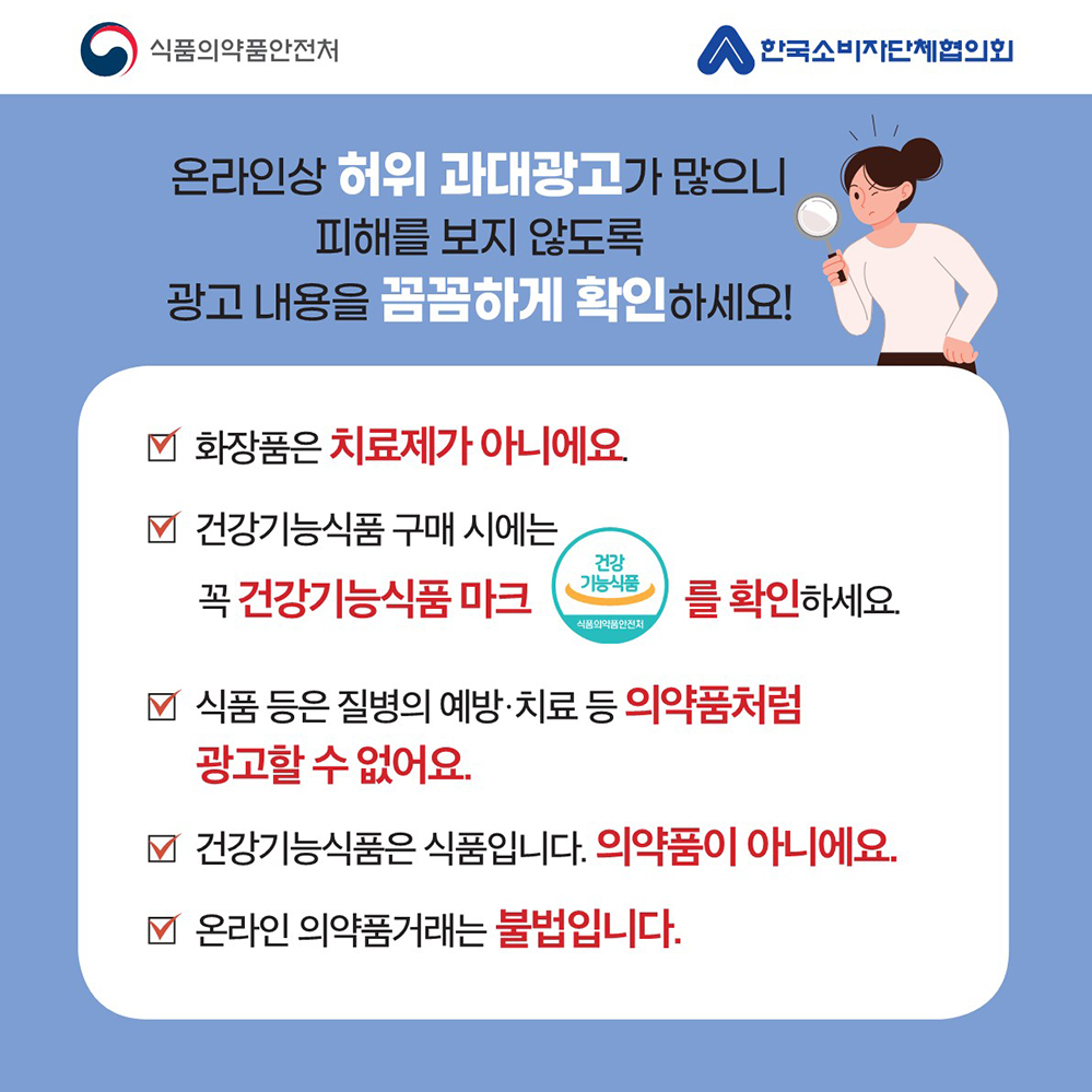 식품, 화장품, 의약품 등 불법유통 및 과대·과장광고 모니터링 진행