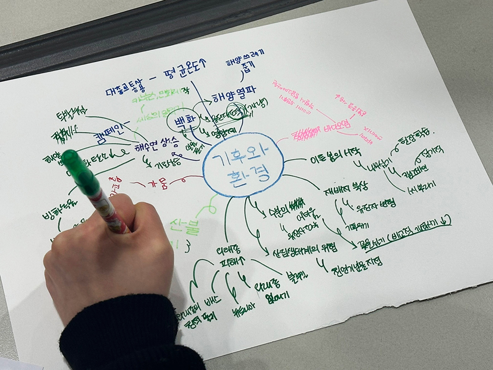 2024 마주하기 시간에는 토론을 통해 새로운 중점운동을 정해보는 시간을 가졌다. 협의회에 참석한 Y-틴들은 중앙 임원들이 제시한 ‘기후와 환경’과 관련한 뉴스 기사와 자료를 놓고 토론을 진행했다. 토론 이후에는 각자 정리한 생각을 협의를 통해 마인드 맵으로 그려보는 시간을 가졌다.