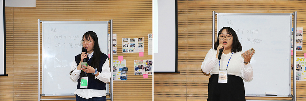 ▲이번 협의회에서 (왼쪽 사진) 이은우 중부지역 회장(대전YWCA)이 2024년 Y-틴 회장으로 선출됐다.
