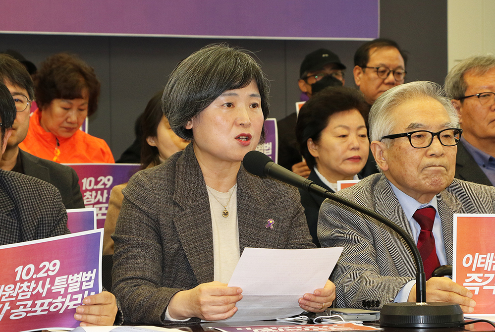 기자회견에 참석한 이정민 유가족 협의회 운영위원장은 “(정부와 여당이 제안하는) 특별법 내용은 특별법을 무산시키기 위한 것”이라며 “우리는 윤정부를 강하게 비판한 적 없는데, 정부는 우리를 반정부 세력 취급한다”고 개탄했다. 이정민 운영위원장은 특별법이 제정이 무산되지 않도록 “국민 여러분이 목소리를 내어 달라”고 당부했다.