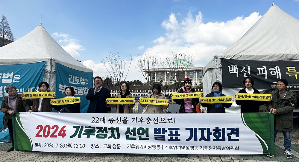 기후위기비상행동은 2월 26일 오후 1시 국회 정문 앞에서 ‘2024 기후정치비전 및 정치행동계획 발표 기자회견’을 열었다.