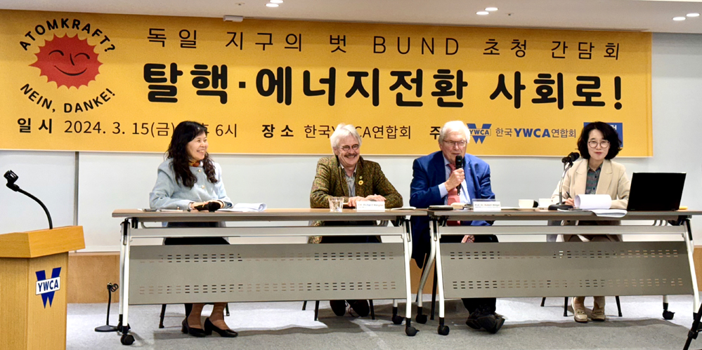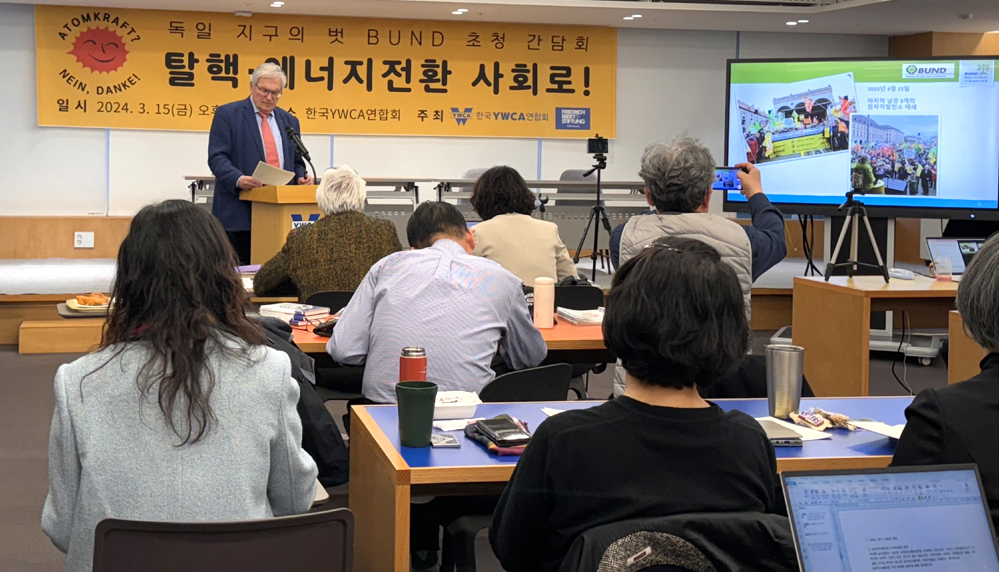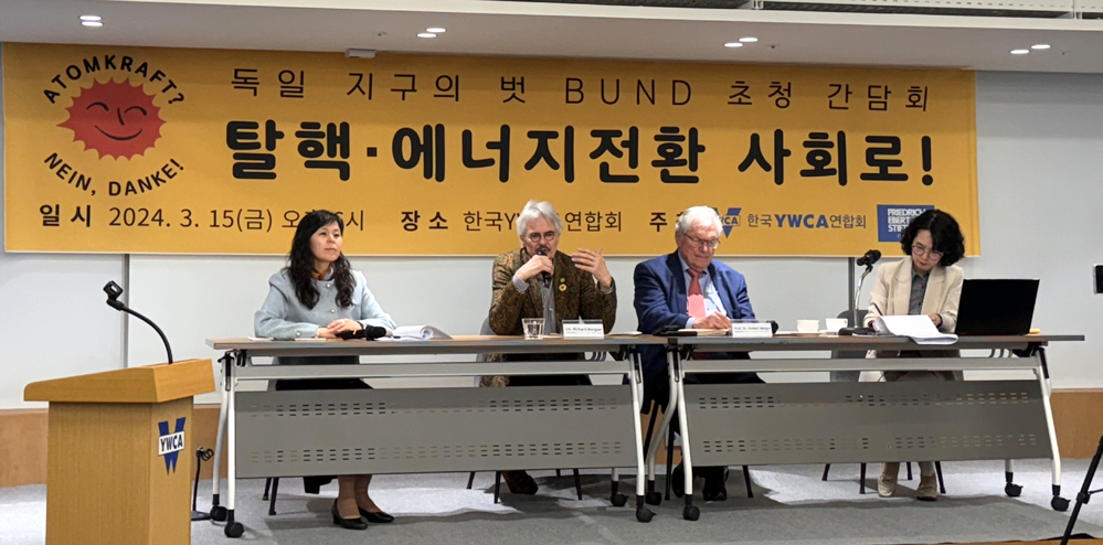 한국도 독일처럼 탈핵·에너지전환 사회로 탈바꿈할 수 있을까? 한국YWCA연합회가 프리드리히 에버트 재단과 함께 <독일 지구의 벗 BUND(분트) 초청 간담회 “탈핵·에너지 전환 사회로”>를 3월 15일(금) 오후 6시 서울 중구 한국YWCA연합회에서 개최했다.