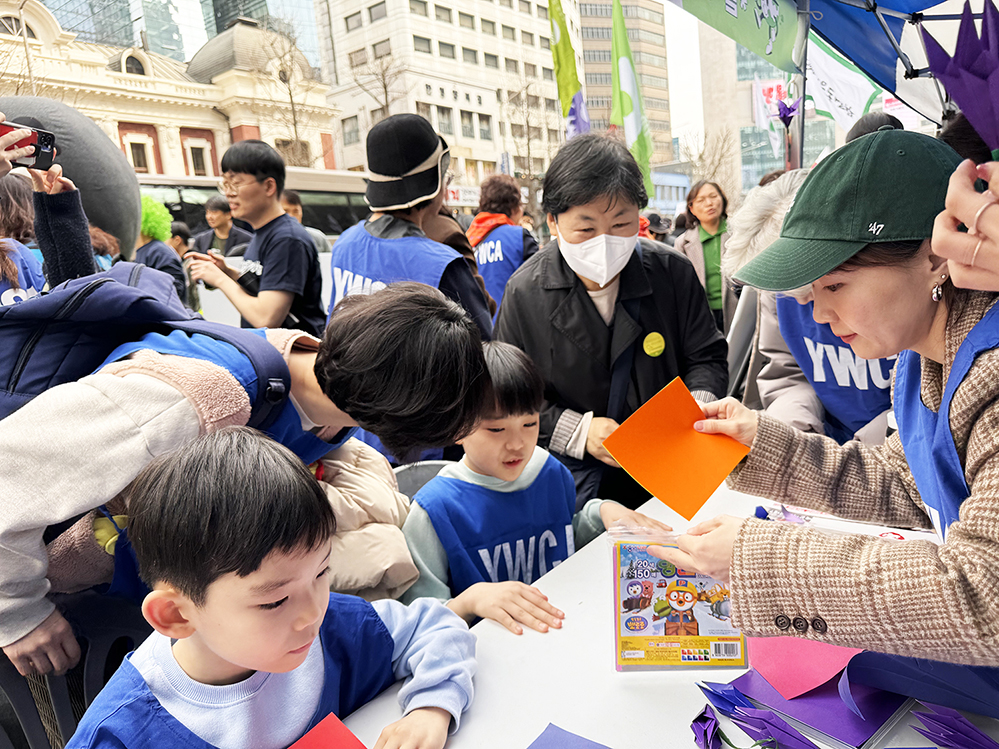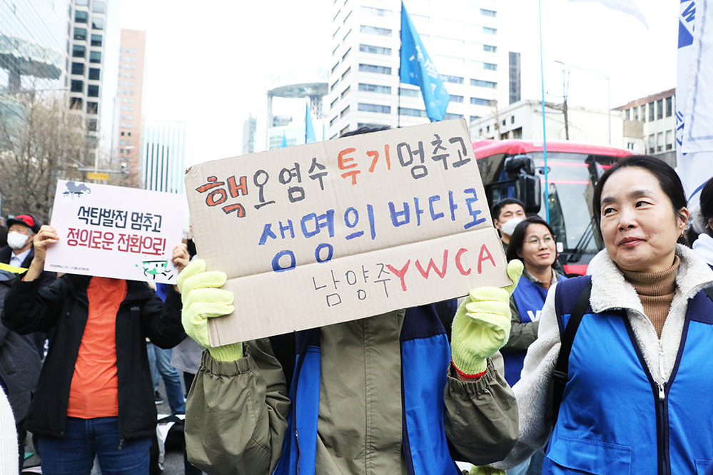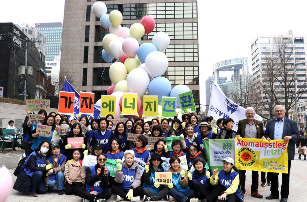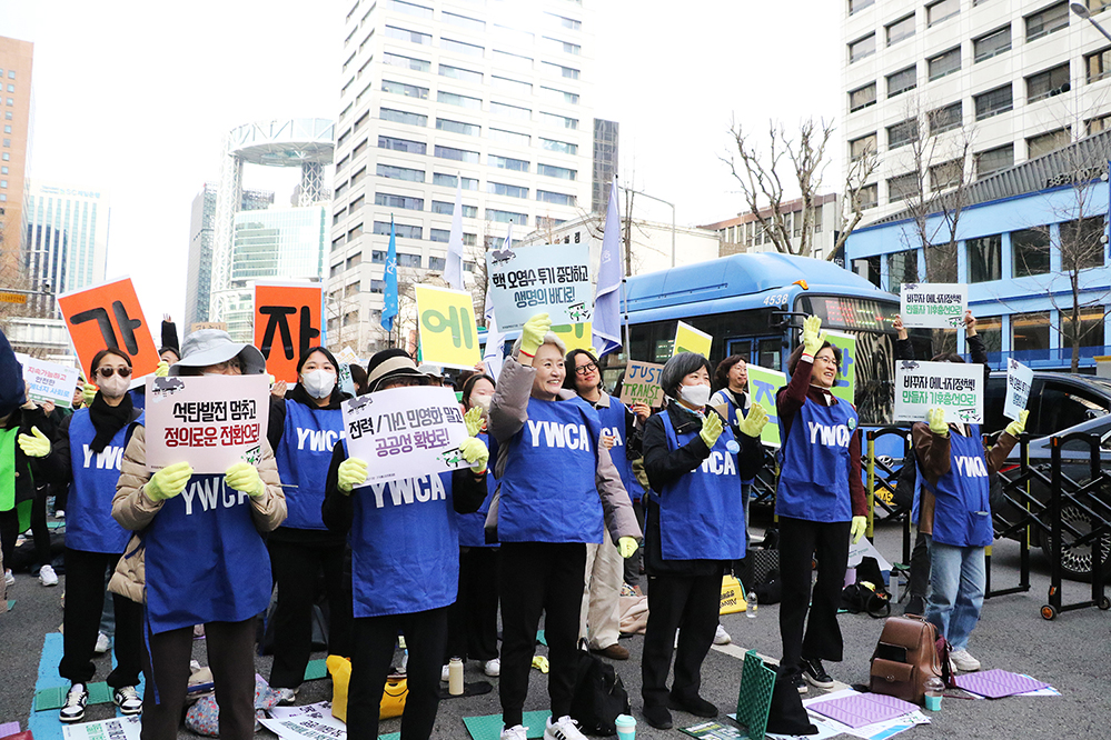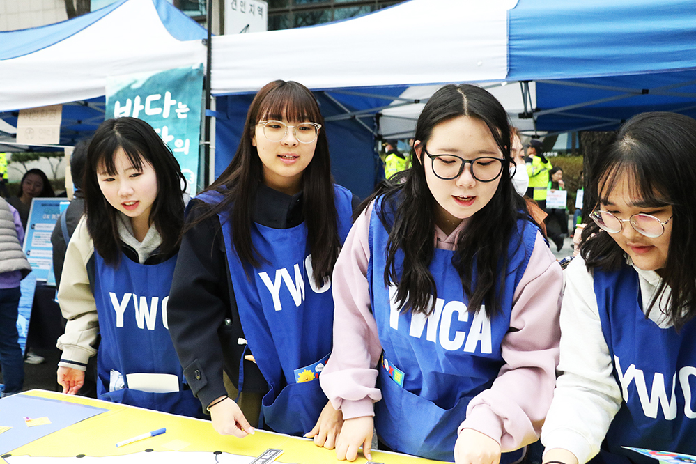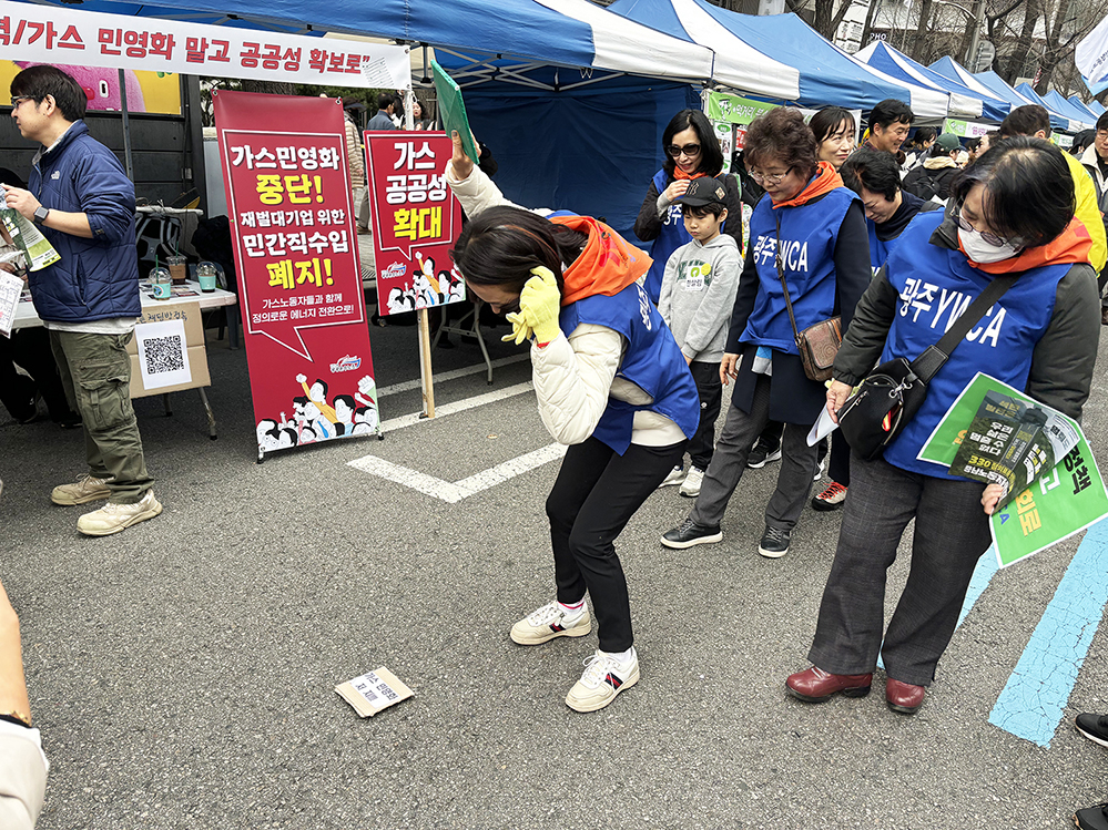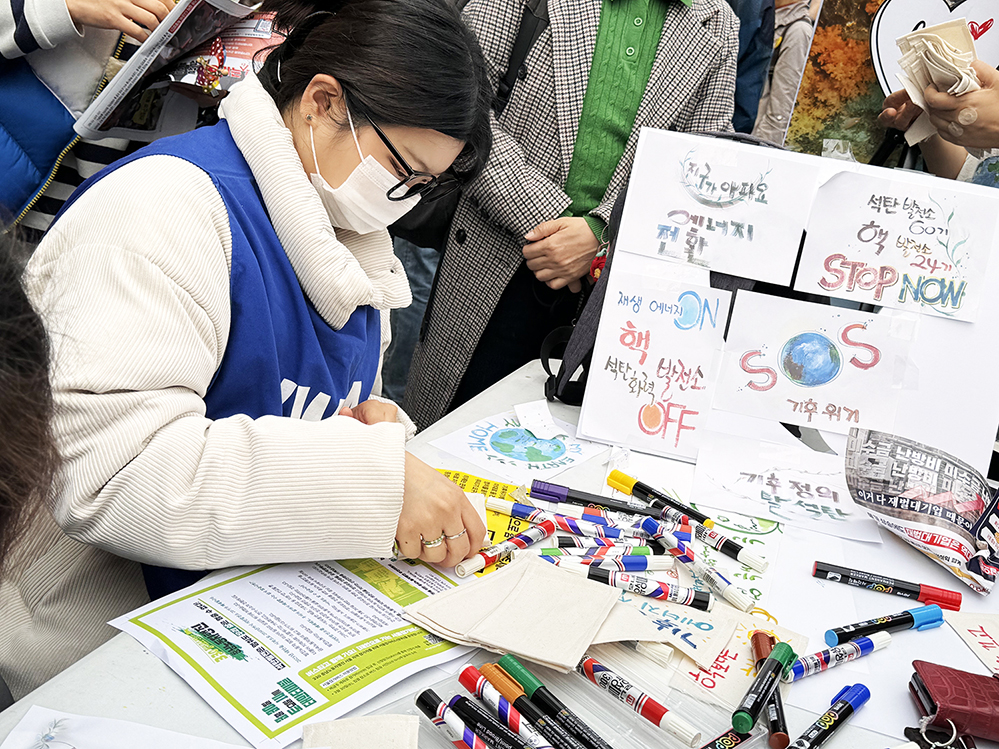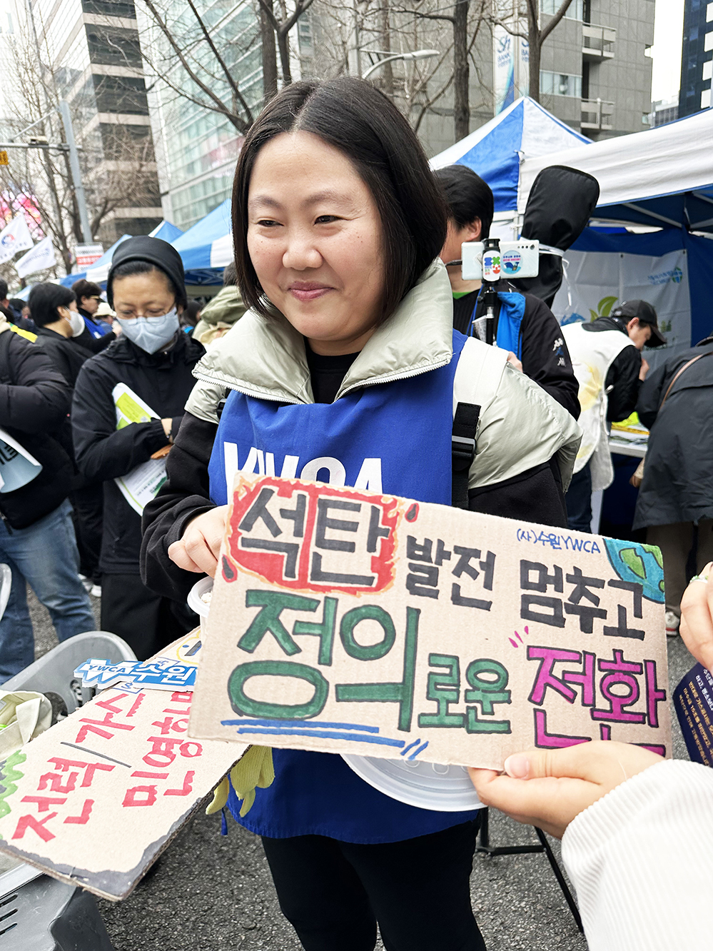 ▲YWCA 활동가들은 오후 2시~3시까지 운영된 ‘에너지 공공성’ ‘재생에너지’ ‘탈석탄’ 핵 오염수’ ‘탈핵 ‘기후정치’ 등 6개 의제를 담은 부스 프로그램에 적극적으로 참여했다.