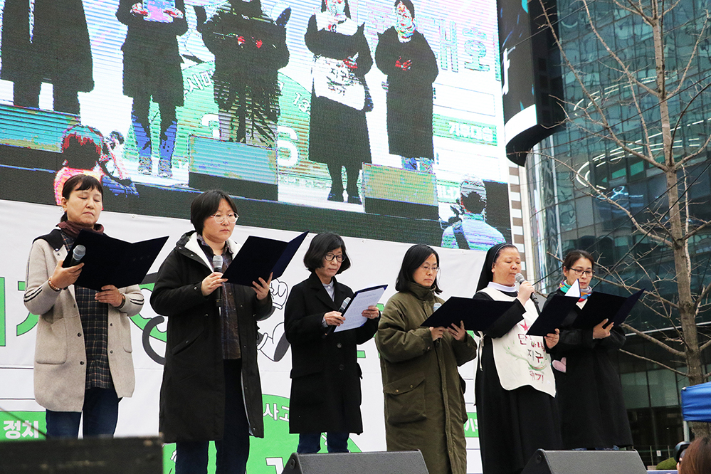 발언문 낭독은 임미화(탈핵부산시민연대 공동집행위원장), 정진영(경남기후위기비상행동), 박기남(지역에너지전환을위한전국넷), 김지은(탈핵에너지전환전북연대 공동집행위원장), 조선형 수녀님(가톨릭기후행동 공동대표), 박행우(경기비상행동 공동대표) 등이 맡았다.