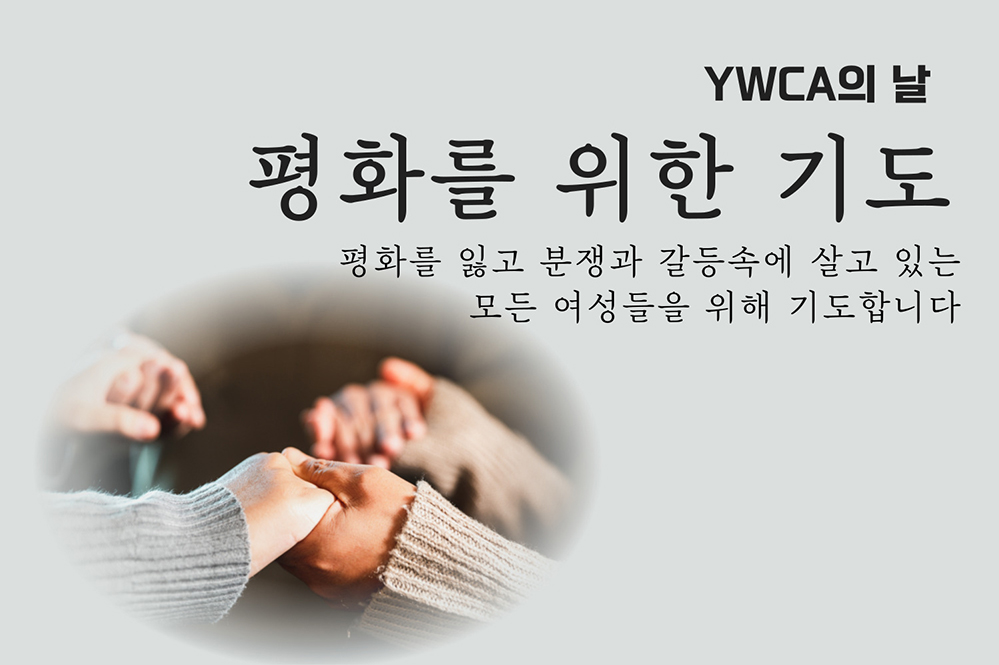 한반도를 비롯하여 미얀마, 팔레스타인, 우크라이나 등 평화가 아닌 분쟁과 갈등 속에 살고 있는 자매들의 위해 YWCA의 모든 구성원들이 함께 기도하며 행동할 것을 다짐하는 하루를 보냅시다.