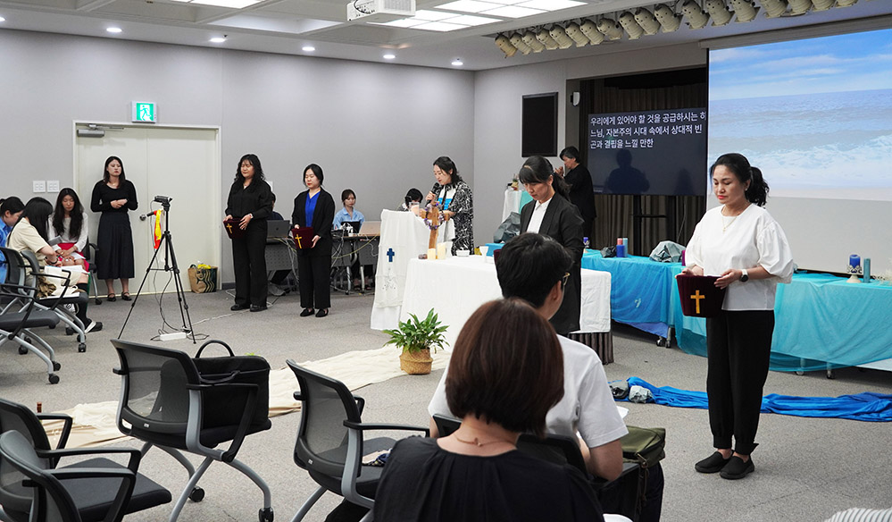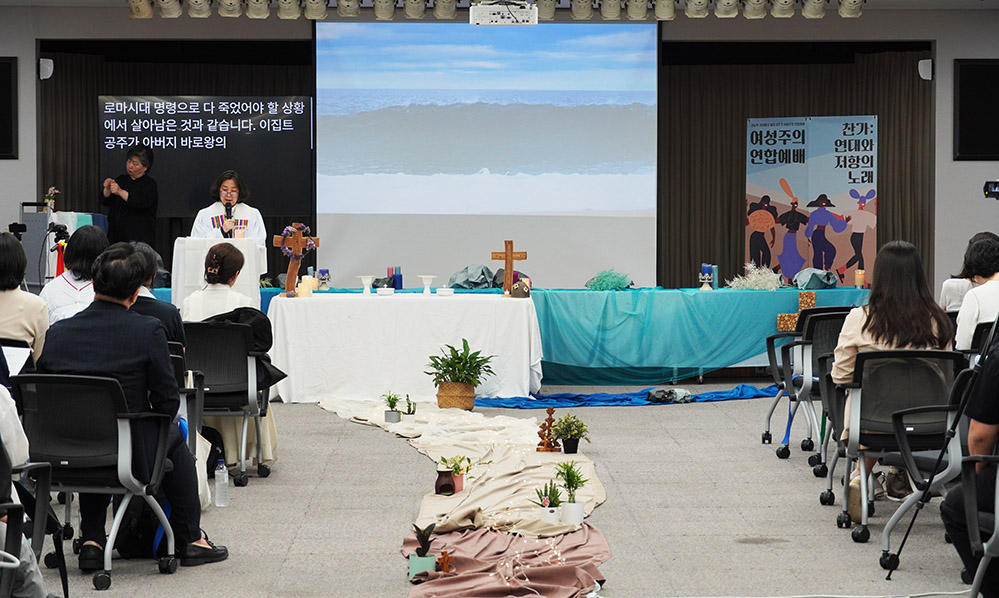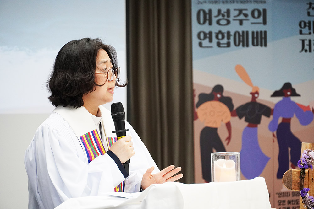 예배 주제는 ‘찬가: 연대와 저항의 노래(출 15:20-21)’로 예배 참석자들이 연대와 저항의 노래를 함께 부르며 젠더폭력 없는 하나님 나라가 함께 이루어가길 바라는 마음을 담고 있다. 특별히 한국여신학자협의회 최은영 총무의 설교와 한국기독학생회 IVF 유희정 간사, 새날교회의 이은주 전도사의 현장 증언으로 말씀 나눔이 진행됐다. 이날 말씀에서는 미리암의 승전가를 재해석해 여성을 향한 혐오와 차별, 폭력과 불평등을 하느님이 바다에 던지셨고 사랑이 혐오를 이긴다는 메시지가 강조됐다.