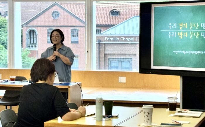 강의를 진행한 이성숙 어린이어깨동무 평화교육센터 팀장은 세계 분단 사회에 대해 설명하고 한반도 평화를 위해 우리가 해야 하는 일을 공유했다. 또한, “평화를 만들기 위해서는 지역의 차별적 콘텐츠를 보편적 콘텐츠로 개발해야 한다”라며, “연대 속에서 희망을 얻고 우리에게 맞는 활동을 개발해야 한다”고 전했다.