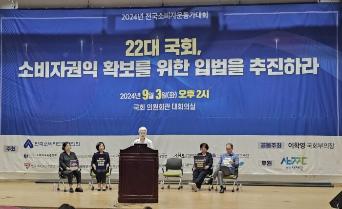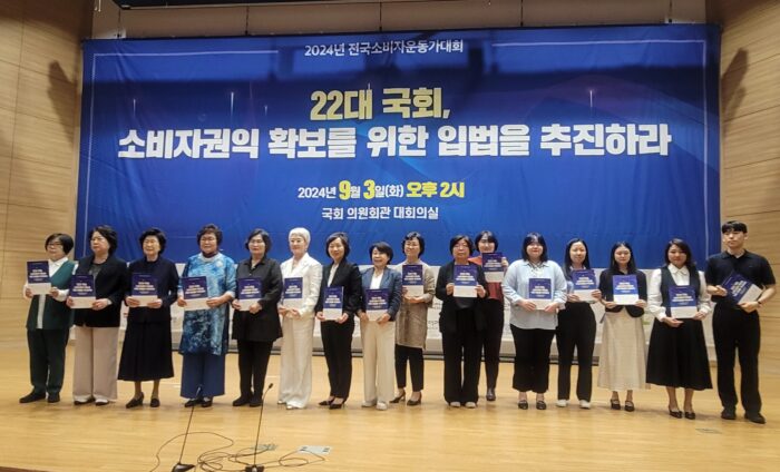 2024년 전국소비자운동가대회가 9월 3일(화) 오후 2시, 국회의원회관 대회의실에서 “22대 국회, 소비자권익 확보를 위한 입법을 추진하라.”라는 주제로 개최됐다.