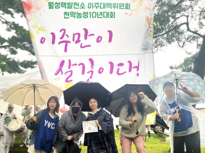 올해 천막농성 10년을 맞이하는 ‘월성원전 인접지역 이주대책위원회’ 천막농성 10년 대회가 9월 21일(토) 오후 2시부터 장대빗 속에서 3시간가량 개최됐다. 이번 행사에는 한국YWCA연합회(회장 조은영)와 울산YWCA를 비롯해 전국에서 모인 200여 명의 시민들이 참가했다.