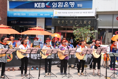 한국YWCA연합회(회장: 차경애)는 27년전 바로 오늘, 6.10 민주화 항쟁의 본거지 명동 YWCA회관 앞에서 위험한 재앙의 불인 핵에너지를 끄고 ‘정의롭고 평화로운 불’을 밝히자는 제 13차 ‘YWCA 탈핵 불의날 캠페인’을 열었다.
