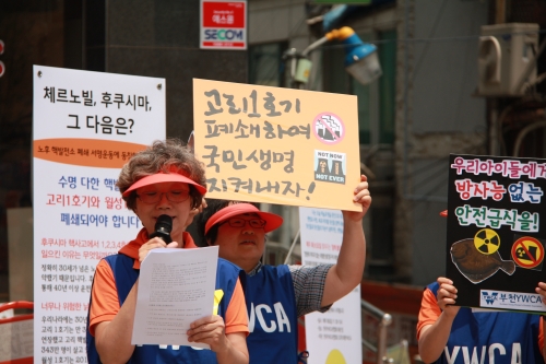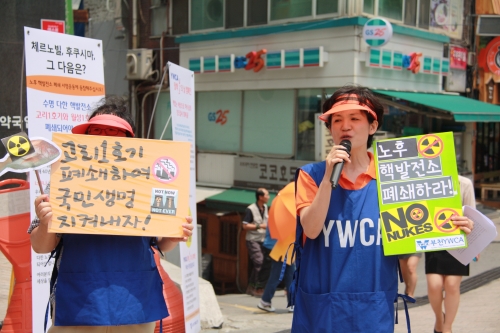 또한, YWCA 탈핵 불의날 캠페인에서는 “어제 6월 9일 경북 울진의 한울 원전1호기의 제어봉 낙하 사고로 원전이 멈추어 섰는데, 30년의 수명이 끝났음에도 불구하고 7년 더 연장 가동 중인 고리 1호기는 130여 건의 고장 사고를 반복해도 오늘도 위험하게 운행을 하고 있다” 며 세월호 참사와는 비교도 안될 재앙을 가져다 줄 고리1호기와 월성 1호기의 가동 중지를 안타깝게 부르짖었다. 한국 YWCA는 이미 3월 캠페인 시작 때부터 노후 핵발전소인 고리1호기 폐쇄를 위해 시민들의 서명을 받고 그 위험성을 알리고 있다. 고리 1호기는 핵 발전소 수명인 30년을 가동한 후 7년간 연장 운행을 하며 각종 사고와 고장이 끊이질 않고 있다. 후쿠시마 핵 사고 이후 독일은 2022년까지 핵발전소를 모두 폐쇄하기로 결정한 데 반해, 우리나라는 2024년까지 현재 핵밀집도 세계1위인 것도 모자라 10개의 핵발전소를 추가 건설할 계획을 추진 중이다. 다음 세대로까지 그 위험성이 이어지는 핵발전소의 문제를 해결하지 못하는 이유는 원자력마피아 즉 원피아(에너지산업체, 연구자, 관료집단)라 불리는 특정세력의 이득과 국민의 생명과 다음세대의 생명을 맞바꾸고 있기 때문인 것이다.